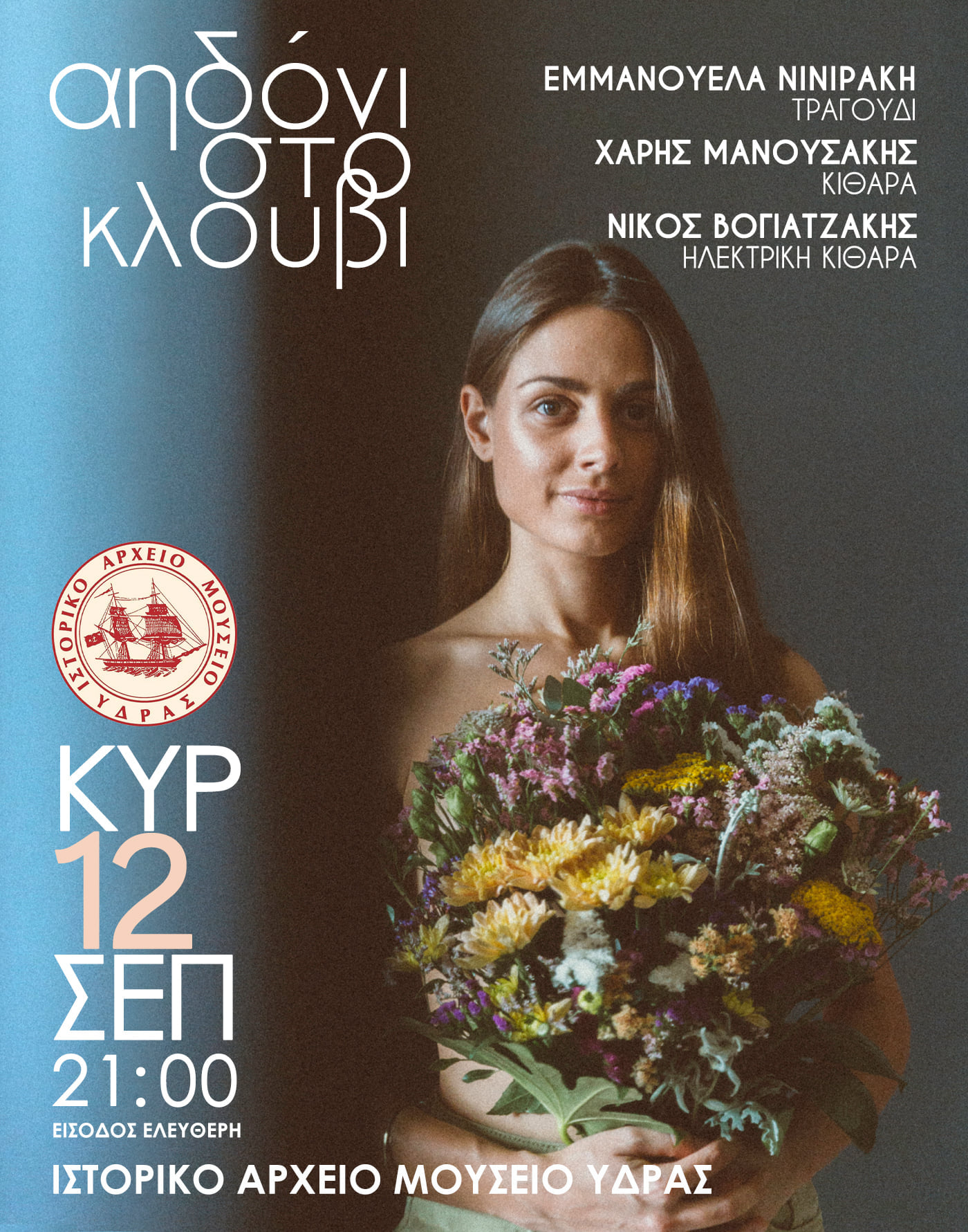 Το Ιστορικό Αρχείο-Μουσείο Ύδρας, πραγματοποιεί συναυλία με τίτλο «Αηδόνι στο κλουβί», την Κυριακή 12 Σεπτεμβρίου 2021 και ώρα 21.00.