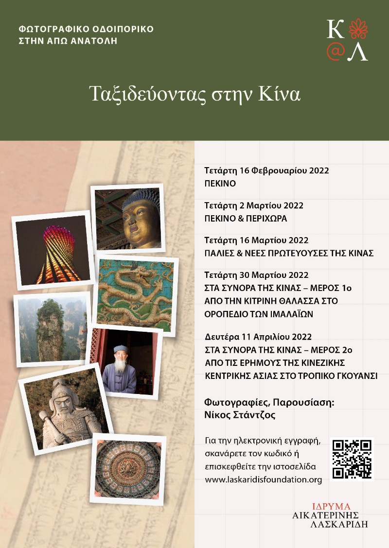 Το Ίδρυμα Αικατερίνης Λασκαρίδη, στο πλαίσιο της λειτουργίας του Κέντρου Κινεζικού Μελετών, σας προσκαλεί σε ένα μοναδικό ταξίδι στην Κίνα, μέσα από τον φωτογραφικό φακό του περιβαλλοντολόγου Νίκου Στάντζου.