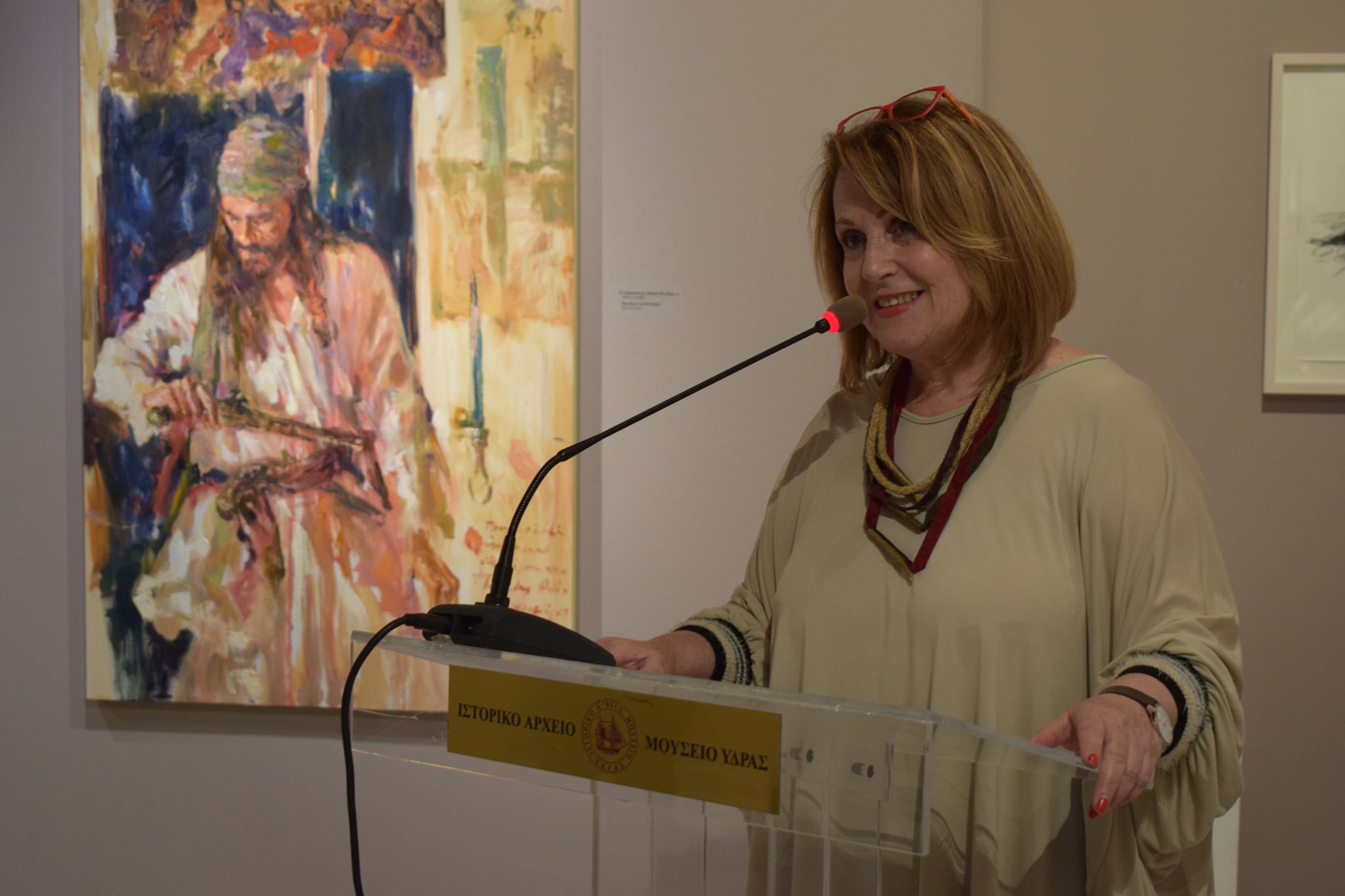 Καλωσορίζοντας τους επισκέπτες, Υδραίους και φίλους της Ύδρας, του ΙΑΜΥ και του Ανδρέα Κοντέλλη, η Διευθύντρια του Ιστορικού Αρχείου και Μουσείου Ντίνα Αδαμοπούλου δήλωσε ιδιαίτερα χαρούμενη για την πραγματοποίηση αυτής της Έκθεσης, καθώς εναρμονίζεται πλήρως με τους χώρους που εκτίθενται οι μόνιμες συλλογές μας, αποτελώντας νοερά μια ενότητα. Γιατί, όπως τόνισε η Διευθύντρια, ο Ανδρέας Κοντέλλης αποτυπώνει την ψυχή του με ευαισθησία και ενώνει αρμονικά την Ιστορία με την τέχνη σε ένα δικό του «Αναστοχασμό» παρουσιάζοντας τη δική του ιστορία μέσα στην καρδιά του ΙΑΜΥ.