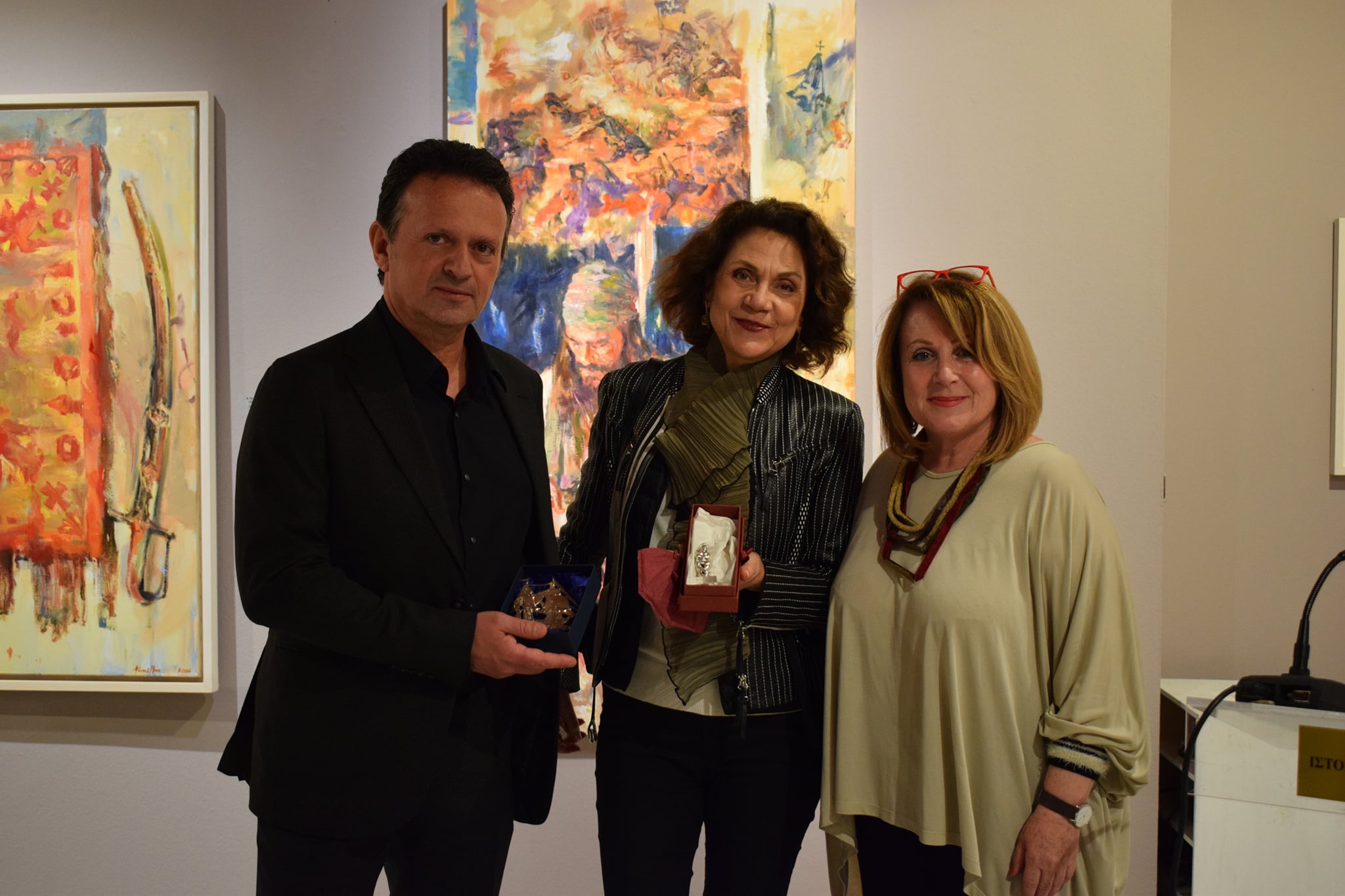 Στα εγκαίνια παραβρέθηκαν μεταξύ άλλων ο Πρωτοπρεσβύτερος π. Ιωαννίκιος Καλαφάτης, ο Δήμαρχος Ύδρας Γιώργος Κουκουδάκης, ο πρ. Δήμαρχος Κώστας Αναστόπουλος, ο πρ. Υπουργός Ανδρέας Ανδριανόπουλος, οι Δημοτικοί Σύμβουλοι Μανώλης Καραμήτσος και Ανδρέας Ρούσσης, ο εφοπλιστής και υποναύαρχος ε.τ. Πάνος Λασκαρίδης, ο νομικός Λεωνίδας Τόλης με την οικογένειά του, με την ευγενική χορηγία του οποίου υλοποιήθηκε η Έκθεση, από την Ένωση Ξενοδόχων η Πρόεδρος Μαρία Πιερρουτσάκου – Κλαδάκη, ο Θεόφιλος Σαΐτης και η Τζένη Σοφιανού, ο επιχειρηματίας και ζωγράφος Βασίλης Θεοχαράκης, ο καλλιτεχνικός διευθυντής του Ιδρύματος Θεοχαράκη Τάκης Μαυρωτάς, ο καρδιολόγος Μανώλης Καλλιέρης, η κριτικός τέχνης Λουΐζα Καραπιδάκη, ο διπλωμάτης Ανδρέας Γούρας, ο ασφαλιστικός σύμβουλος Γιώργος Κώτσαλος, ο συγγραφέας Γιώργος Πίττας και η δημοσιογράφος Μπήλιω Τσουκαλά, η δημοσιογράφος Αλεξάνδρα Παπαϊσιδώρου, ο συλλέκτης Ευάγγελος Ιατρόπουλος, η νομική σύμβουλος του ΙΑΜΥ Τζένη Μπαλτά, ο Διευθυντής του Γυμνασίου Δημήτρης Σαράντης, η κυρία Anne-Laure Heugel, η παιδοψυχίατρος Ηρώ Κούνουπα, η νομικός Κατερίνα Τσιάρα, ο αρχιτέκτων Δημήτρης Παπαχαραλάμπους, ο Άρης Παυλίδης, ο επιχειρηματίας Πέτρος Κλαδάκης, η Παυλίνα Πρωταίου και ο Χρήστος Σμυρνιώτης καθώς επίσης και πολλοί φίλοι που τίμησαν με την παρουσία τους την όμορφη εκδήλωση.