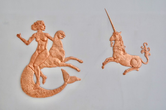 Η Τζένη Λεοτσινίδη, μέσα από ρευστές άμορφες μάζες, και όγκους που αψηφούν τη βαρύτητα και στέκονται στο χώρο ως παγωμένες ηφαιστειακές εκρήξεις, δημιουργεί γλυπτά με Ο λείες επιφάνειες τους αντανακλούν αρχετυπικά σύμβολα που ενυπάρχουν στην ψυχή μας. Μέσα τους περικλείουν εικόνες που πραγματεύονται τον κύκλο της ολοκλήρωσης της ζωής και του ανθρώπου και λειτουργούν ως χαρτογράφηση της ατραπού προς τη συνειδητότητα. Τα έργα της είναι ένα ταξίδι από την ύλη στο πνεύμα. Σύγχρονα σύμβολα μπλέκονται με ελεύθερες ερμηνείες των εικονογραφήσεων των Ταρώ, δημιουργώντας έτσι το αλφάβητο μιας συναισθηματικής γλώσσας που αναλύει τα μυστήρια που βρίσκονται στα έγκατα της ψυχής μας. Γλυπτά και ζωγραφικά που παραπέμπουν στην παιδική ηλικία και την αθωότητα φτιάχνει ο Δημήτρης Νεβεσκιώτης, που συνυπάρχουν μεταξύ ζωγραφικής, γκράφιτι και κόμικ, σοβαρού και αστείου, ενός κόσμου που προηγείται κι ενός κόσμου που έπεται με δυνατότερο σημείο συνάντησης το παρόν και ότι διαδραματίζεται αυτή την στιγμή, όπως και τα γλυπτά του- είναι μικρά κεραμικά που μας παραπέμπουν στο παρελθόν, αλλά μέσα από την ματιά ενός νέου καλλιτέχνη που τον ενδιαφέρει να αρθρώσει την εικαστική γλώσσα της γενιάς του.