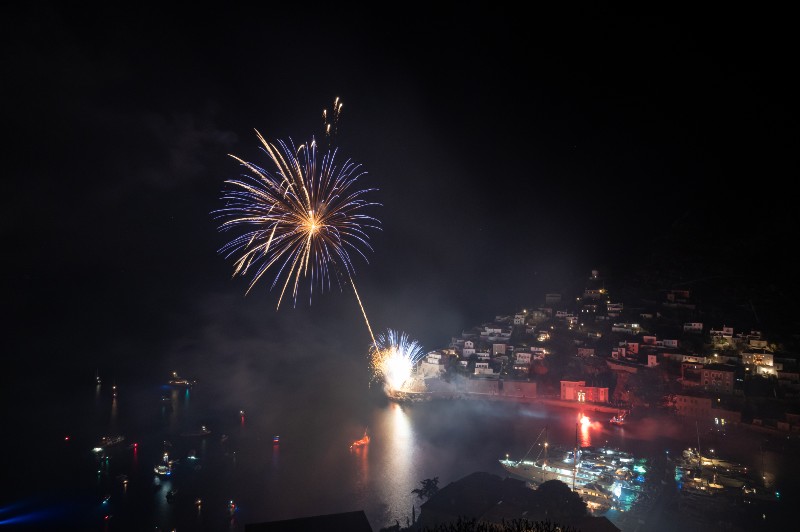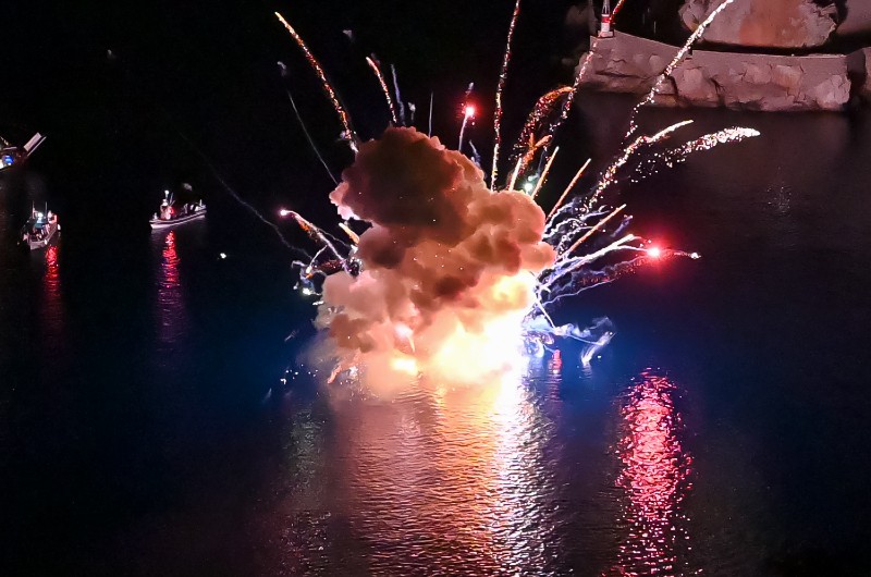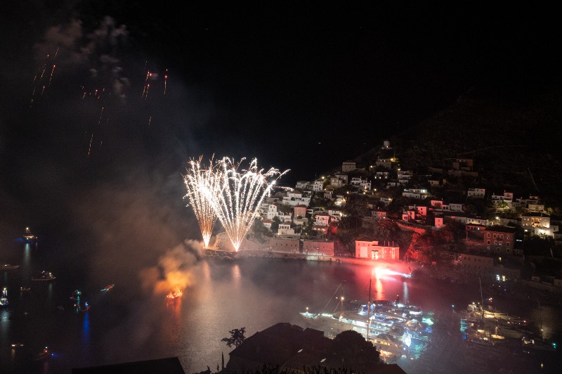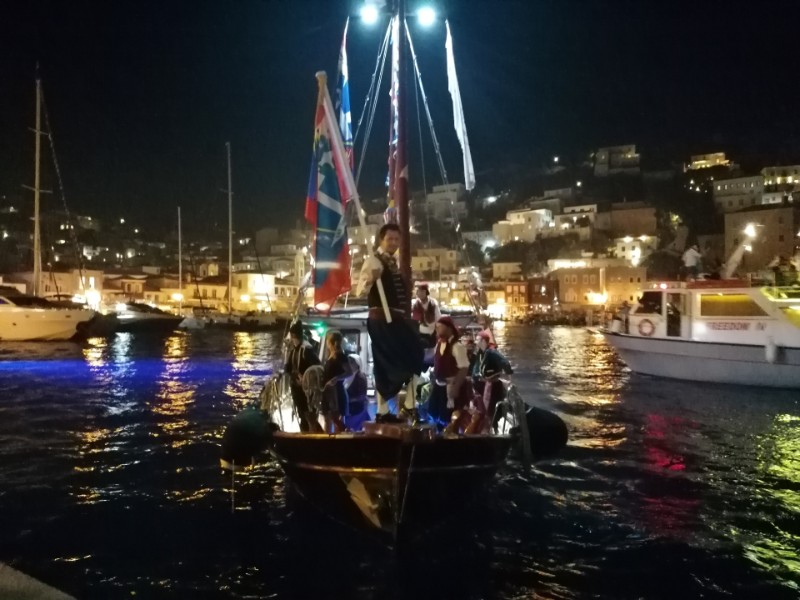 Με μεγάλη επιτυχία πραγματοποιήθηκε η κορύφωση, της γιορτής των Μιαουλείων με την αναπάρασταση της Ναυμαχίας του Γέροντα και την πυρπόληση ομοιώματος της οθωμανικής φρεγάτας.