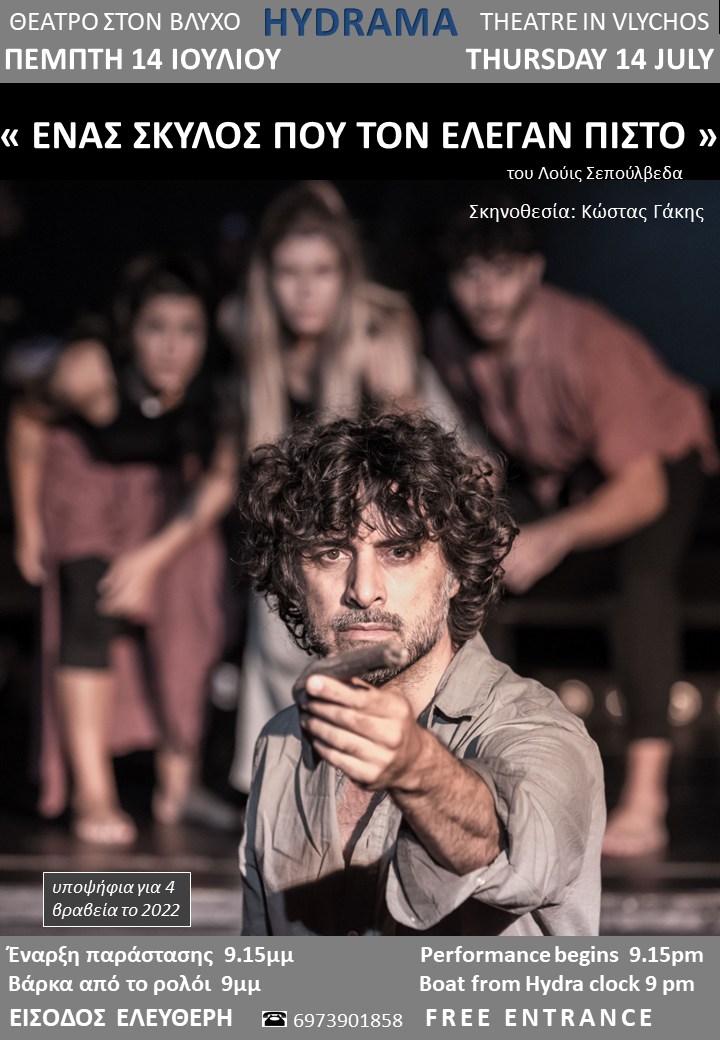 Αυτή την Πέμπτη 14 Ιουλίου στο Θέατρο του Βλυχού ζωντανεύει το αριστούργημα του Λούις Σεπούλβεδα, «Ιστορία ενός σκύλου που τον έλεγαν πιστό» σε μία μοναδική θεατρική και μουσική εμπειρία - φόρος τιμής στον αδικοχαμένο αγωνιστή συγγραφέα και σε κάθε αγωνιζόμενο άνθρωπο.