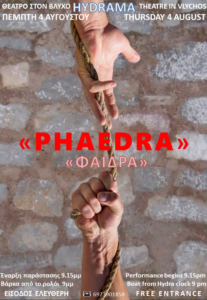 Την Πέμπτη 4 Αυγούστου θα παρουσιαστεί στο Θέατρο του Βλυχού η παράσταση ΦΑΙΔΡΑ του Ευριπίδη.