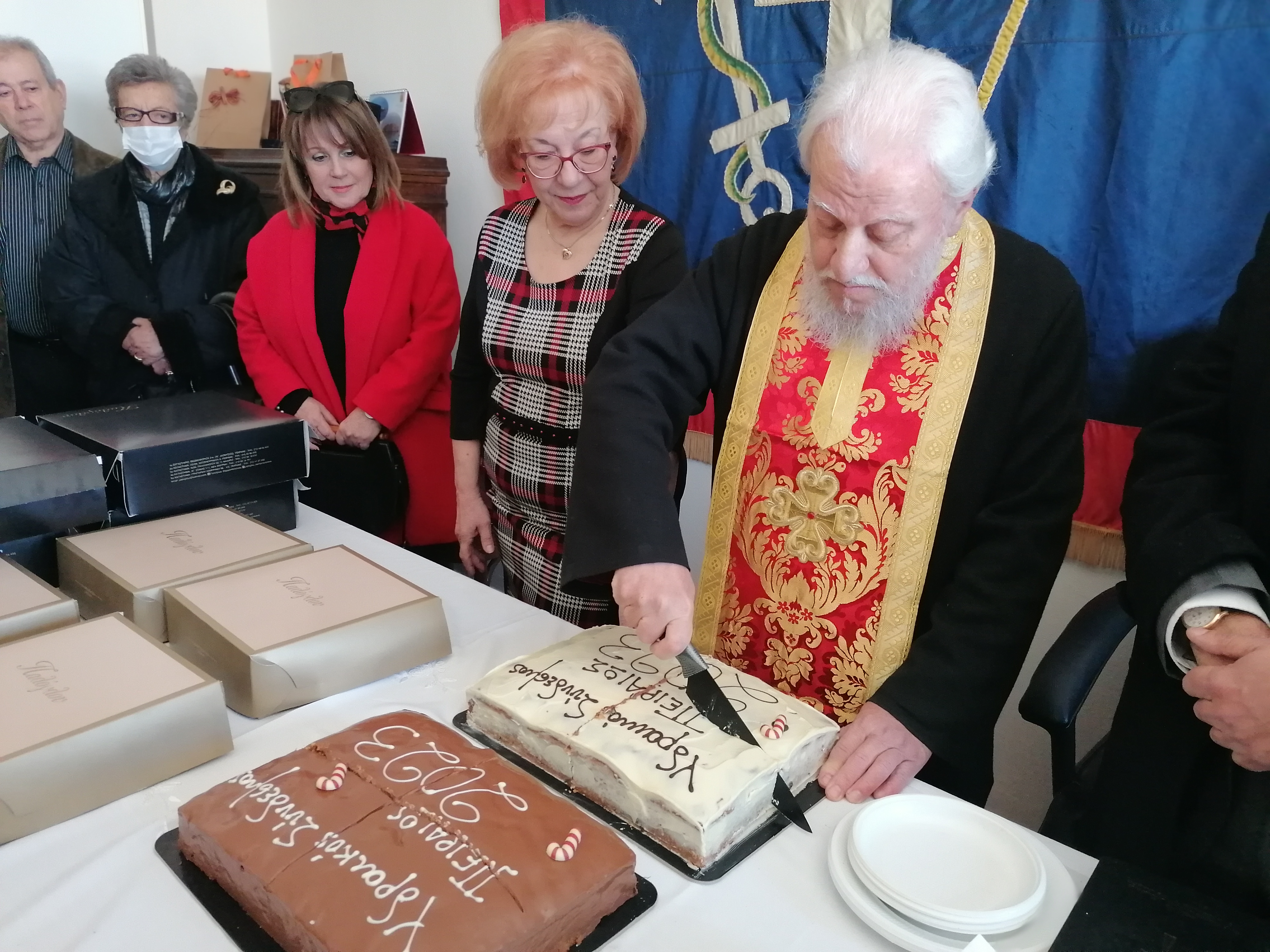 Μετά τη Γενική Συνέλευση ακολούθησε, η Κοπή της Βασιλόπιτας που ευλόγησε ο Αρχιμανδρίτης π. Χρυσόστομος Βάρκας.