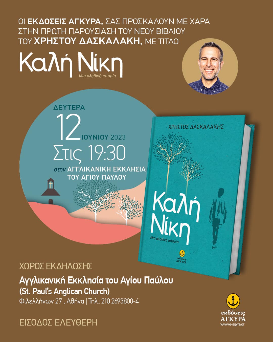 Σε έναν χώρο γεμάτο κατάνυξη και ηρεμία, ακριβώς όπως ήταν και οι στιγμές δίπλα στην Καλλινίκη, θα πραγματοποιηθεί η πολύ ενδιαφέρουσα παρουσίαση, στις 12 Ιουνίου, ημέρα Δευτέρα και ώρα 19:30 στην Αγγλικανική Εκκλησία του Αγίου Παύλου (Φιλελλήνων 27, Αθήνα).
