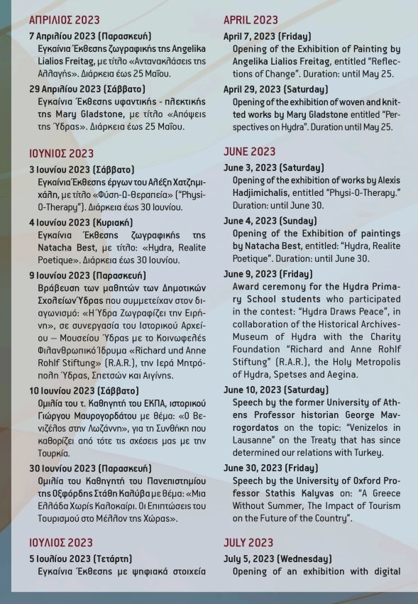Πολιτιστικό Καλοκαίρι Ύδρας - Το Πρόγραμμα των εκδηλώσεων Ι.Α.Μ.Υ 2023 συγκεντρωτικά