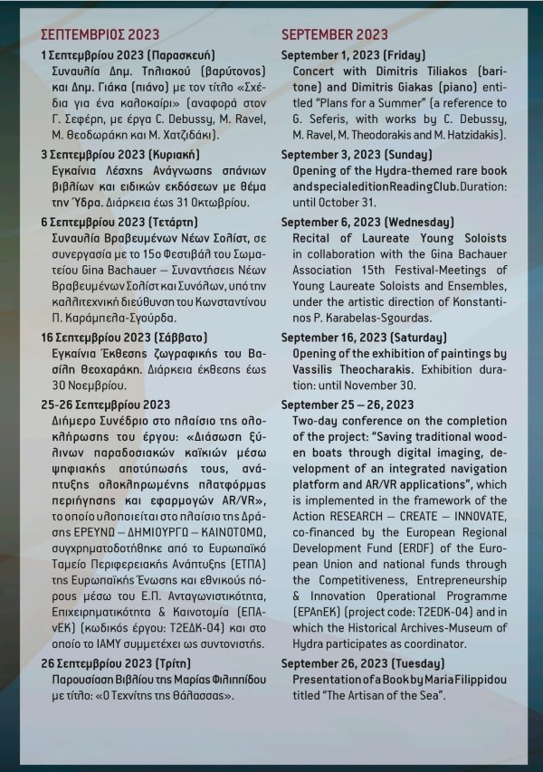 Πολιτιστικό Καλοκαίρι Ύδρας - Πρόγραμμα εκδηλώσεων Ι.Α.Μ.Υ 2023
