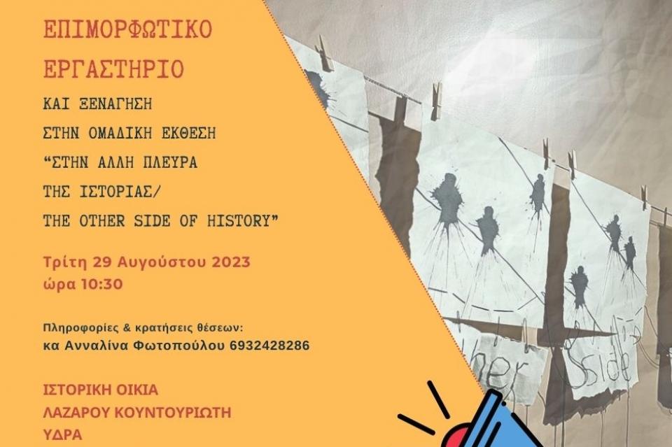 Το εργαστήρι οργανώνει η Εκπαιδευτικός- Υπεύθυνη του Τμήματος Εικαστικών στο Εργαστήριο Τέχνης & Λόγου (Hydra Arts Lab) της Κ.Ε.Δ.Υ. κα Ανναλίνα Φωτοπούλου, η οποία είναι και συμμετέχουσα καλλιτέχνις στην έκθεση. Ακολούθως θα πραγματοποιηθεί ξενάγηση από την Κριτικό Τέχνης και Επιμελήτρια της έκθεσης, κα Έφη Μιχάλαρου.