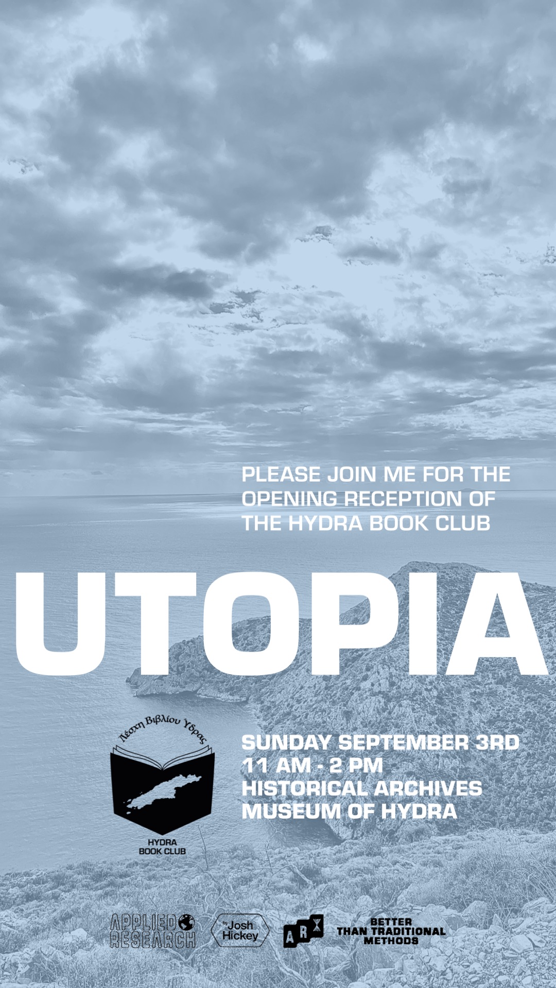 Η Utopia, Hydra Book Club, θα παρουσιαστεί στο Ιστορικό Αρχείο - Μουσείο της Ύδρας, από τις 2 Σεπτεμβρίου έως και τις 22 Οκτωβρίου 2023
