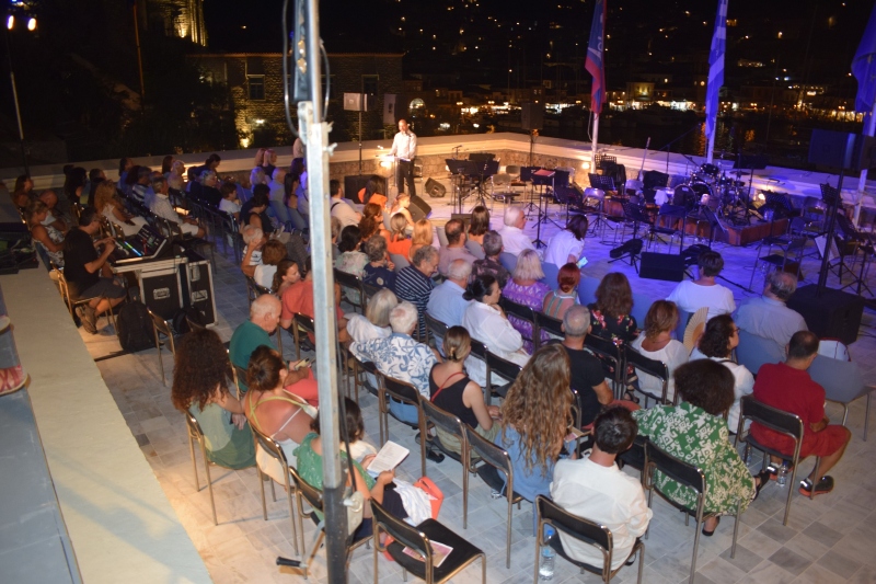 Μέσα στο μαγευτικό σκηνικό που συνέθεσαν η αυγουστιάτικη πανσέληνος σε συνδυασμό με τη θέα στο πανέμορφο, γραφικό λιμάνι της Ύδρας που αφειδώς την προσφέρει η ταράτσα του ΙΑΜΥ, η Ύδρα συναντήθηκε με την Κρήτη σε μία εξαιρετική εκδήλωση στο πλαίσιο της οποίας η Vamos Orchestra ταξίδεψε το πολυπληθές κοινό της βραδιάς σε αγαπημένες μελωδίες αντιπροσωπευτικές από την εποχή που έζησε ο Νίκος Καζαντζάκης και από τις χώρες που επισκέφθηκε στα ταξίδια του.