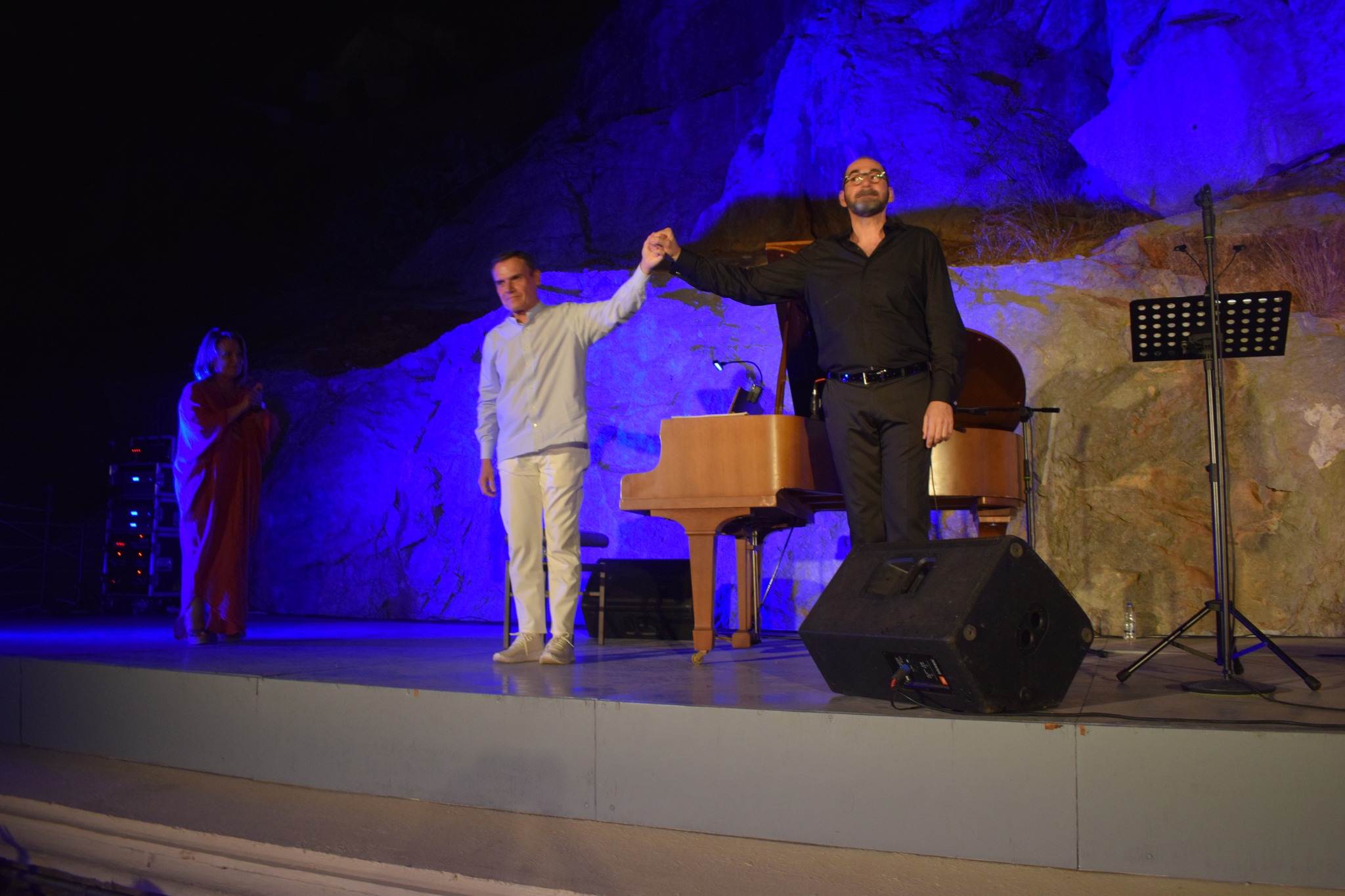 Οι δύο καλλιτέχνες επί σκηνής, μάγεψαν το μουσικόφιλο κοινό με τις μελωδίες του πιάνου και με την εξαιρετική φωνή του Δ. Τηλιακού σε μουσικές νότες των Αργύρη Κουνάδη, Μάνου Χατζιδάκι και Μίκη Θεοδωράκη. Ενδιάμεσα ο Δ. Τηλιακός απάγγειλε με περισσή μαεστρία στίχους από την ποίηση των Γ. Σεφέρη, Μ. Σαχτούρη, Ο. Ελύτη κ.α. Ευχάριστη έκπληξη της βραδιάς, ήταν η κόρη του Δημήτρη Τηλιακού, Λήδα, η οποία ανέβηκε στη σκηνή τραγουδώντας σε απόλυτη αρμονία με τον διάσημο πατέρα τα Λιανοτράγουδα και ενθουσιάζοντας το κοινό που την καταχειροκρότησε.