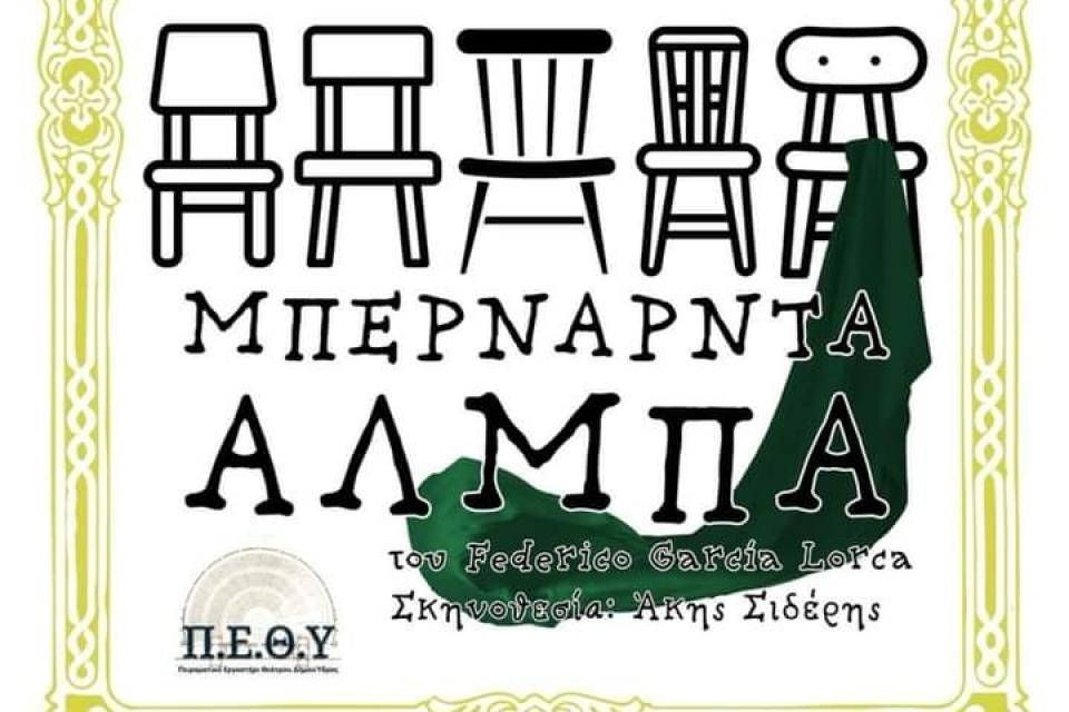 Το Πειραματικό Εργαστήριο Θεάτρου του Δήμου Ύδρας (Π.Ε.Θ.Υ) παρουσιάζει το θεατρικό δράμα ΤΟ ΣΠΙΤΙ ΤΗΣ ΜΠΕΡΝΑΡΝΤΑ ΑΛΜΠΑ του Ισπανού συγγραφέα και ποιητή Federico García Lorca. Είναι το τελευταίο έργο που έγραψε ο Lorca το 1936, λίγο πριν τη δολοφονία του, και παρουσιάστηκε για πρώτη φορά το 1945. Μαζί με τη "Γέρμα" και το "Ματωμένο Γάμο" αποτελούν την τριλογία της "ισπανικής υπαίθρου" του συγγραφέα.