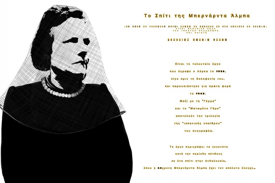 Το Πειραματικό Εργαστήριο Θεάτρου του Δήμου Ύδρας (Π.Ε.Θ.Υ) παρουσιάζει: ΤΟ ΣΠΙΤΙ ΤΗΣ ΜΠΕΡΝΑΡΝΤΑ ΑΛΜΠΑ (ισπανικά: La Casa de Bernarda Alba. Drama de mujeres en los pueblos de España), ένα θεατρικό δράμα του Ισπανού συγγραφέα και ποιητή Federico García Lorca.