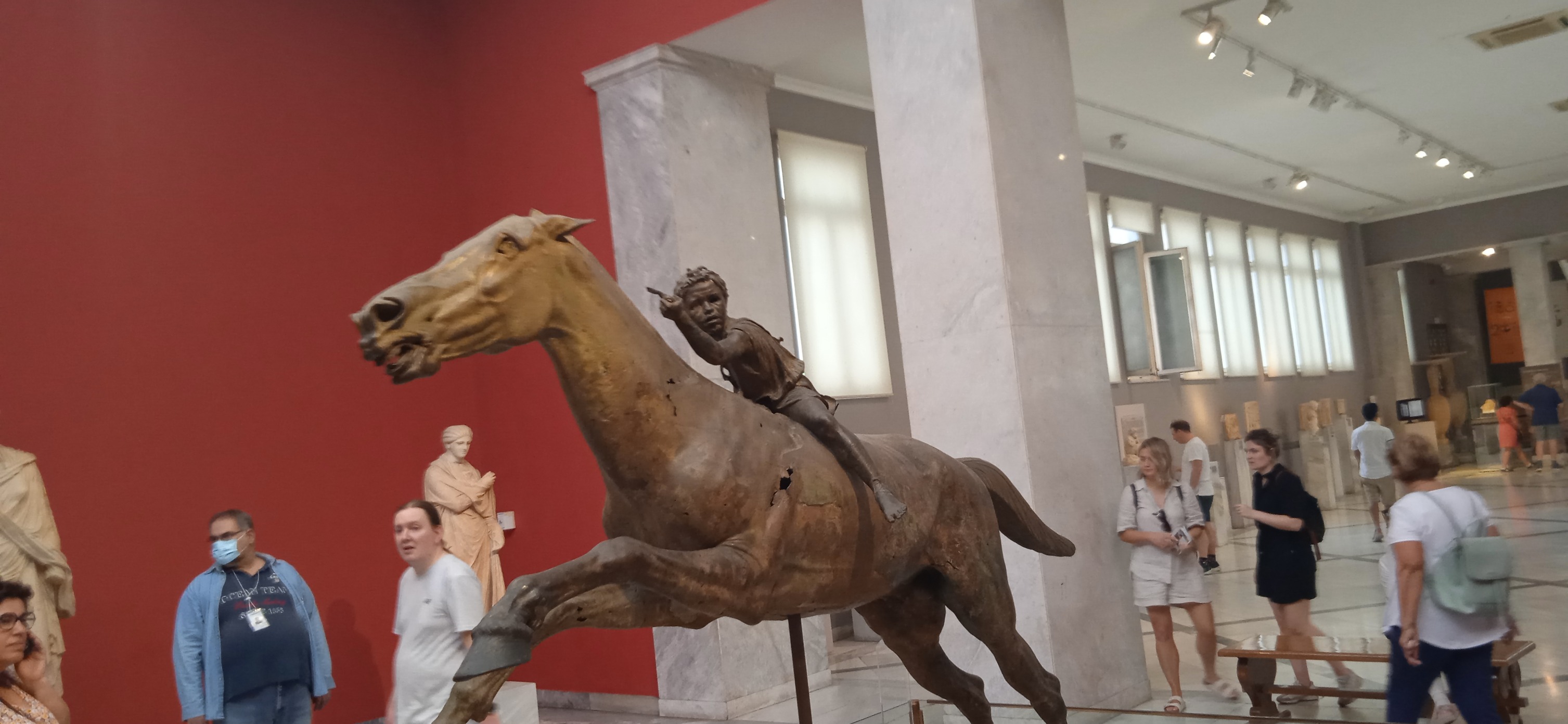 Αμέσως μετά, οι μαθητές/τριες μετέβησαν στο Εθνικό Αρχαιολογικό Μουσείο της Αθήνας, το μεγαλύτερο μουσείο της Ελλάδας και ένα από τα σημαντικότερα του κόσμου. Κατά τη διάρκεια της ξενάγησης γνώρισαν τις πλούσιες συλλογές του Μουσείου, ένα πανόραμα του αρχαίου ελληνικού πολιτισμού από τις αρχές της προϊστορίας έως την ύστερη αρχαιότητα. Συγκεκριμένα, περιηγήθηκαν στις συλλογές προϊστορικών αρχαιοτήτων, αγγείων και μικροτεχνίας, έργων μεταλλοτεχνίας, αιγυπτιακών και ανατολικών αρχαιοτήτων ενώ στη συνέχεια θαύμασαν μια από τις σημαντικότερες, διεθνώς, συλλογή έργων γλυπτικής της ελληνικής αρχαιότητας, από τον 7ο αι. π.Χ. έως τoν 5ο αι. μ.Χ. Μετά το τέλος της επίσκεψης στο Μουσείο, οι μαθητές/τριες περπάτησαν στο ιστορικό Θησείο και είχαν ελεύθερο χρόνο για φαγητό και ξεκούραση.