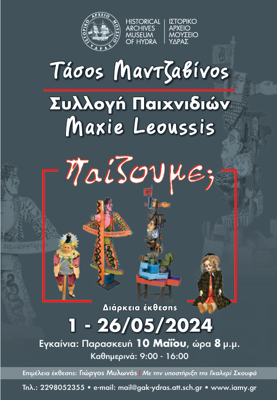 Ένα ταξίδι στην παιδικότητά μας με όχημα τη συλλογή παλιών παιχνιδιών που πρόσφατα απέκτησε το Ιστορικό Αρχείο - Μουσείο Ύδρας και μια σειρά ζωγραφικών έργων και κατασκευών του Τάσου Μαντζαβίνου, επιχειρεί το ΙΑΜΥ, υπακούοντας στο εξόχως ποιητικό σύνθημα «μόνη πατρίδα, τα παιδικά μας χρόνια!».
