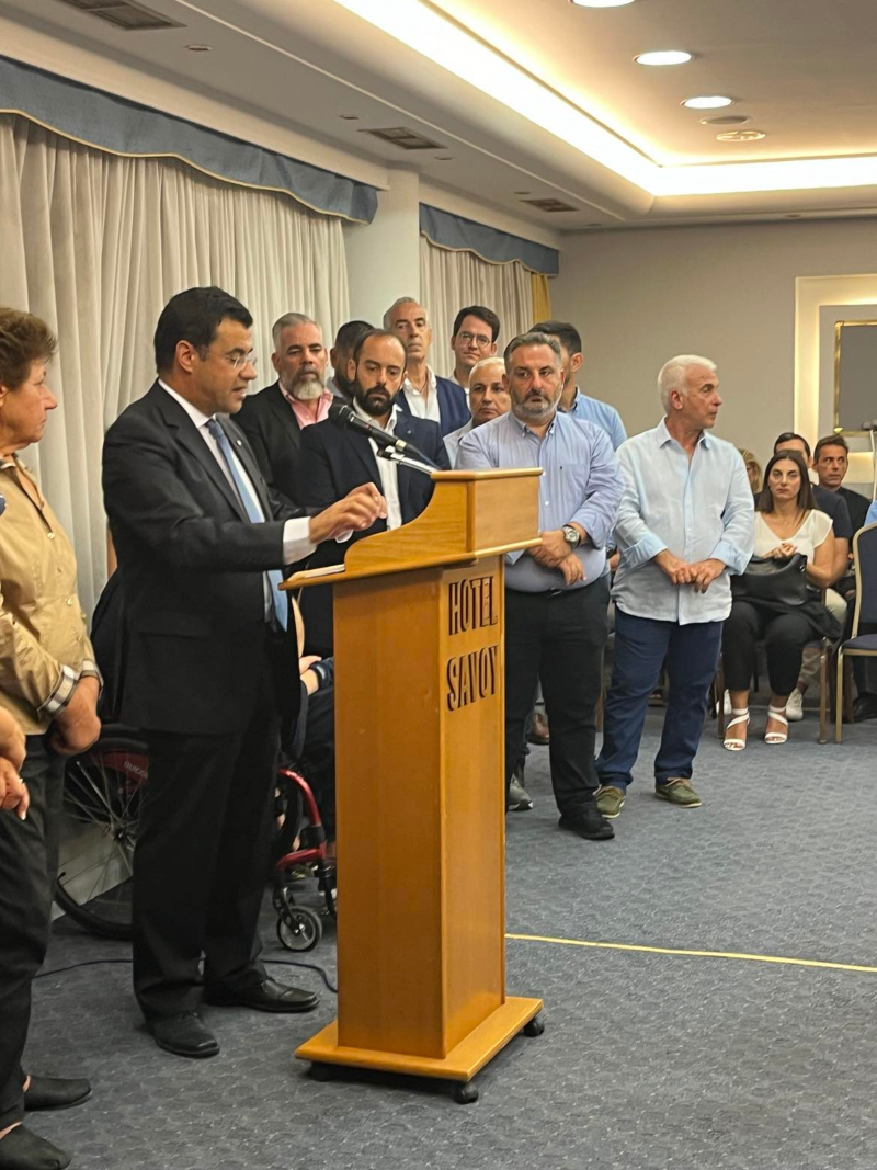 Παρών στην ομιλία ήταν επίσης ο Υφυπουργός Προστασίας του Πολίτη Κώστας Κατσαφάδος και ο πρ. Βουλευτής της ΝΔ, Νίκος Μανωλάκος.