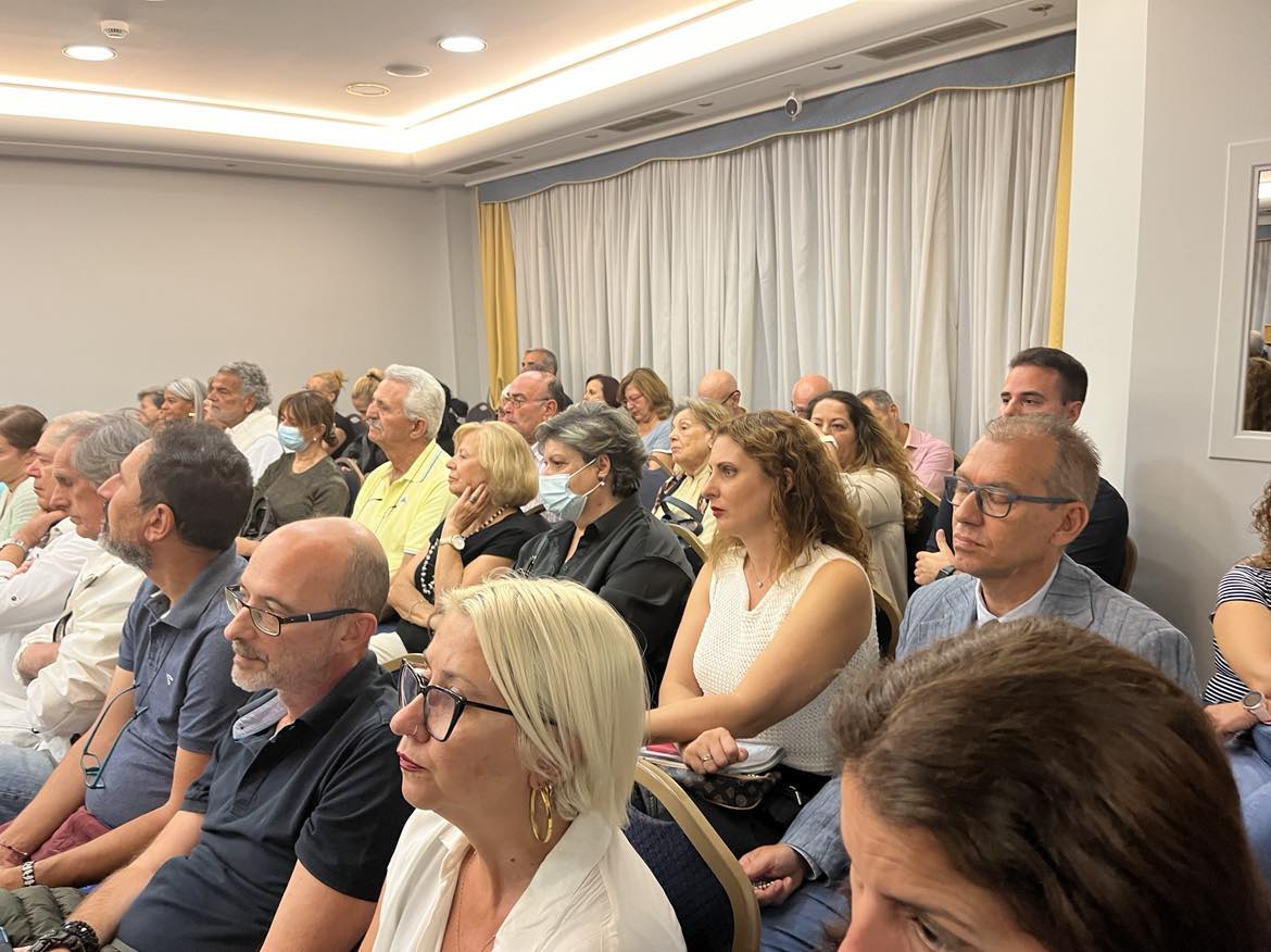 Υδραίοι δημότες που κατοικούν στον Πειραιά και την Αθήνα επισκέφτηκαν το Ξενοδοχείο Savoy για να ακούσουν την ομιλία του Γιώργου Κουκουδάκη.