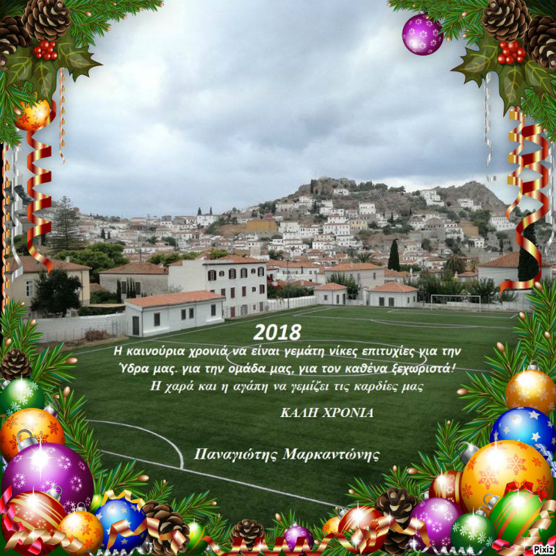«Το 2017 ας είναι μια Χρονιά γεμάτη Αγάπη, Αλληλεγγύη, Υγεία, Ευτυχία και Πρόοδο. Όλοι μαζί Ενωμένοι μπορούμε να Κερδίσουμε το Μέλλον που μας Αξίζει. Χρόνια Πολλά σε όλες και όλους από την γιορτινή και πάντα φιλόξενη Ύδρα!»