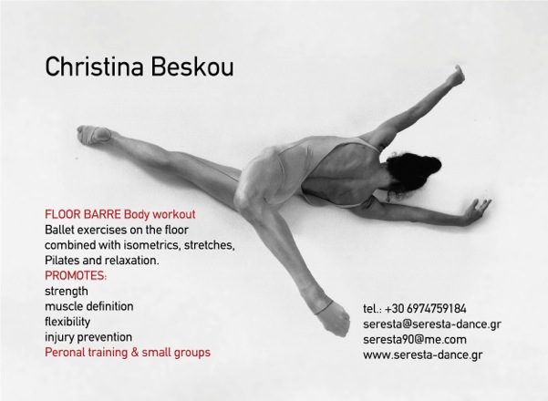 Περισσότερο από 25 χρόνια η Υδραία Καταξιωμένη Χορογράφος και εκπαιδεύτρια Χριστίνα Μπέσκου διδάσκει το Floor-Barre. Η εμπειρία από τη διδασκαλία αυτή, την έκανε να λαμβάνει υπόψη της και τις ανάγκες των ανθρώπων που δεν έχουν σχέση με τον χορό.