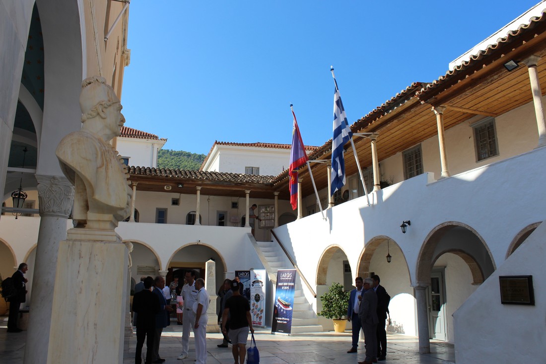 O Dr. Γιώργος Πατέρας, Πρόεδρος του Διοικητικού Συμβουλίου του Ναυτικού Επιμελητηρίου Ελλάδος, άνοιξε την Ομάδα Συζήτησης I: H σημασία των Ναυτιλιακών Κολλεγίων και μίλησε για διάφορα γεγονότα στην Ιστορία της Ελληνική Σημαίας, περιστατικά/επεισόδια που επηρέασαν την ανάπτυξη της, την εξέλιξη της σημαίας και πώς αυτή η ανάπτυξη αλληλοεπιδρά με το Ελληνικό πλήρωμα. Ο κύριος Πατέρας μίλησε για τους λόγους που οδήγησαν στη δραματική μείωση των πλοίων που έχουν Ελληνική Σημαία , και κατά συνέπεια, στη δραματική μείωση των Ελληνικών εμπορικών πλοίων. Για παράδειγμα, είπε ο Κύριος Πατέρας, στο παρελθόν, οι Τράπεζες επέβαλλαν τις σημαίες της Λιβερίας και Παναμά ως εκείνες τις σημαίες που συμμορφώνονταν με τις προϋποθέσεις των κανονισμών και κανόνων των Τραπεζών. Ο Νόμος 89 του 1967 αποτέλεσε σημαντικό ορόσημο στην Ελληνική Ναυτιλία. Χωρίς καταρτισμένα στελέχη στον Ελληνικό εμπορικό στόλο, η Ελληνική Σημαία ξεκινά να βυθίζεται ενώ οι άλλες σημαίες αναπτύσσονται σε πληθώρα. Περισσότερα πλοία με ελληνική σημαία έχουν ως αποτέλεσμα να έχουμε περισσότερους Έλληνες αξιωματικούς και αντίστροφα οι περισσότεροι Έλληνες αξιωματικοί οδηγούν στο να έχουμε περισσότερα πλοία με ελληνική σημαία. Ο κύριος Πατέρας μίλησε επίσης, για την κρίσιμη ανάγκη να εκπαιδεύσουμε περισσότερους νέους στη θάλασσα – το πρόγραμμα σπουδών πρέπει να αναβαθμιστεί πλέον. Το Υπουργείο έδωσε αυτό το θέμα προς επίλυση στον κλάδο της Ναυτιλίας, και είναι υποχρεωτικό να δουλέψουμε όλοι μαζί και να συνεργαστούμε για να αυξήσουμε τον Ελληνικό στόλο και άρα να αυξήσουμε και τα πλοία με Ελληνική σημαία. Ο κύριος Πατέρας εξέφρασε την ευγνωμοσύνη του για ένα ακόμα επιμορφωτικό συνέδριο ανάμεσα σε φίλους και συνεργάτες με υπόβαθρο την όμορφη Ύδρα και το παλιότερο Ναυτικό Κολέγιο στον κόσμο. Η Ύδρα είναι η ιδανική τοποθεσία, είπε ο Κύριος Πατέρας, για την ανταλλαγή απόψεων και ιδεών, και συμπλήρωσε ότι ανυπομονεί για το επόμενο γεγονός που θα πραγματοποιηθεί του χρόνου.