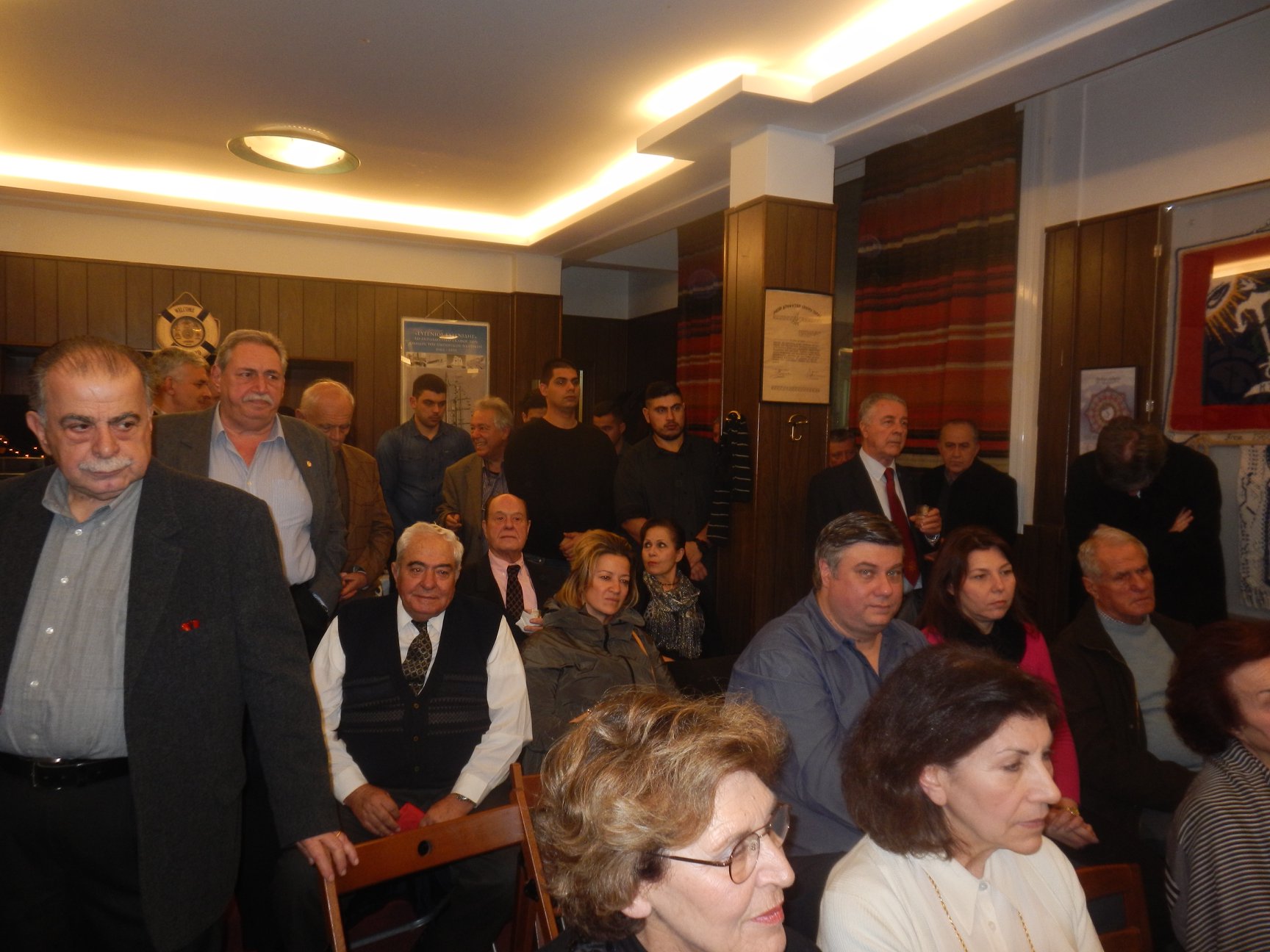 Παρόντες, μεταξύ άλλων, ο Αντιναύαρχος Λ.Σ. ε.α. Αριστείδης Παπανδρέου, Επίτιμος Αρχηγός Λ.Σ., μέλος της Λέσχης και απόφοιτος της Σχολής (1953), ο Πρωτοπρεσβύτερος, Υποναύαρχος Λ.Σ. ε.α., Πατήρ Γεώργιος Καλαμάρης, ο Διοικητής της Α.Ε.Ν. Ύδρας Ευάγγελος Δανόπουλος, Αντιπλοίαρχος Λ.Σ. και ο Αναπληρωτής Διευθυντής Σπουδών κ. Βασίλειος Σταυρόπουλος με επταμελή αντιπροσωπεία σπουδαστών της Ακαδημίας, ο εφοπλιστής καπετάν Κωνσταντίνος Πρίφτης, απόφοιτος της Σχολής (1960) και εκλεκτό μέλος της Λέσχης, με πολλούς συμμαθητές του, η Διευθύντρια του Ιστορικού Αρχείου-Μουσείου Ύδρας κυρία Ντίνα Αδαμοπούλου, ο Γεν. Γραμματέας του Δ.Σ. της Λέσχης Αρχιπλοιάρχων καπετάν Παναγιώτης Μηνόγιαννης, ο Πρόεδρος του Δ.Σ. της Πανελλήνιας Ένωσης Συνταξιούχων Πλοιάρχων Ε.Ν. καπετάν Δημήτρης Μηνδρινός, οι Πρόεδρος και Γραμματέας του Δ.Σ. του Σωματείου Ναυτικών Γονέων Παιδιών με Ειδικές Ανάγκες «Η Αργώ» κυρίες Δέσποινα Παπαστελιανού και Ελπίδα Ξεφτεράκη, εκπρόσωπος του Γραφείου του Λιβεριανού Νηολογίου στον Πειραιά, ο καπετάν Ευάγγελος Τσιγκάρης, ο καπετάν Αντώνης Τζίρμπης ως και πολλοί άλλοι εκλεκτοί φίλοι και μέλη της Λέσχης.