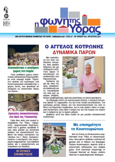Η τελευταία συνέντευξη του Άγγελου Κοτρώνη ήταν στο τεύχος Αυγούστου του 2017 της "Φωνής της Ύδρας".