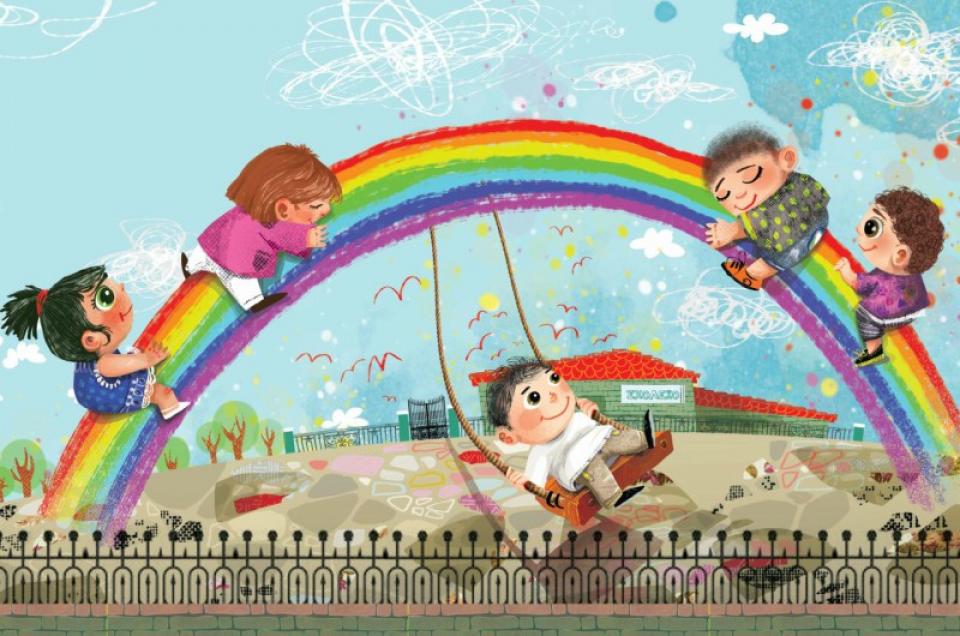Πρόκειται για ένα τρυφερό παραμύθι που μιλάει για την έλλειψη επικοινωνίας στις μεγαλουπόλεις, για τη δύναμη της διαφορετικότητας, για τον σχολικό εκφοβισμό και για το ουράνιο τόξο που κρύβουν μέσα τους τα παιδιά, την ελπίδα για ένα κόσμο γεμάτο χρώματα.