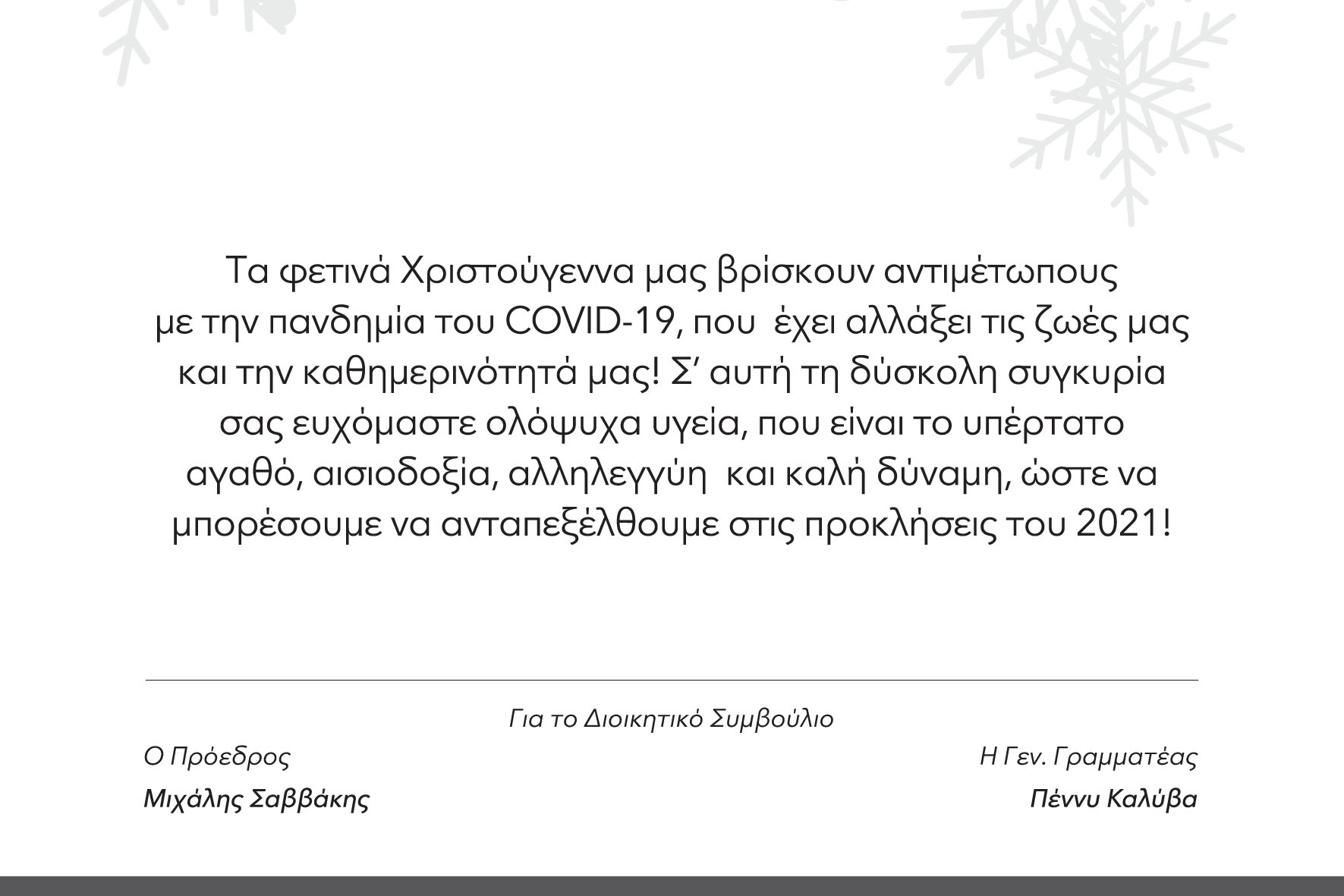 Η Ένωση Δημοσιογράφων Ιδιοκτητών Περιοδικού Τύπου (ΕΔΙΠΤ), της οποίας είναι μέλος του Διοικητικού Συμβουλίου μεταξύ εκλεκτών συναδέλφων, η Δημοσιογράφος Εκδότρια της "Φωνής της Ύδρας", Ελένη Χριστοδούλου, στέλνει σε όλες και όλους τις ευχές της με την παρακάτω κάρτα!
