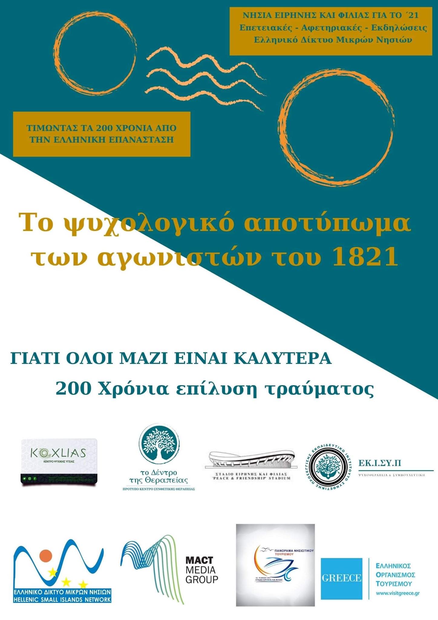 Πρόκειται για τις συνεργασίες εν τη ενώσει για την επανάσταση του 1821 δυο θεραπευτικών θεσμών, του Κέντρου Ψυχικής Υγείας ΚΟΧΛΙΑΣ (Κική Μερτζάνη MSc, Σχεσιακή Ψυχοθεραπεύτρια) και ΤΟΥ ΔΕΝΤΡΟΥ ΤΗΣ ΘΕΡΑΠΕΙΑΣ & ΕΚΙΣΥΠ.