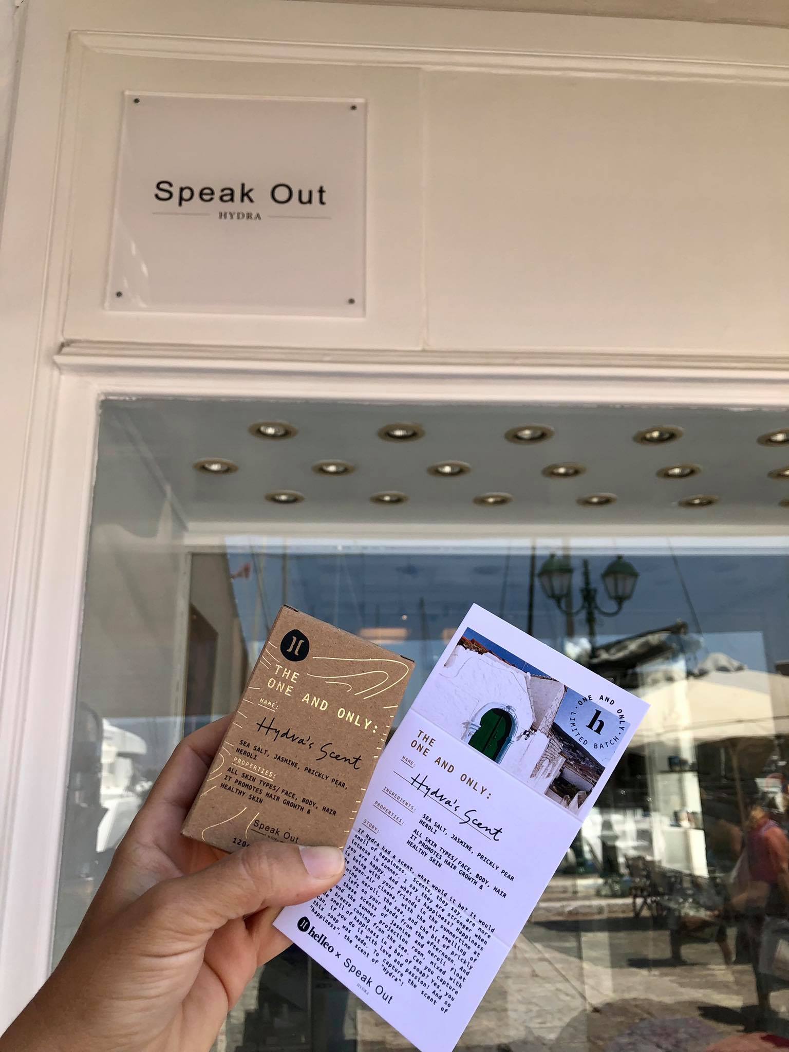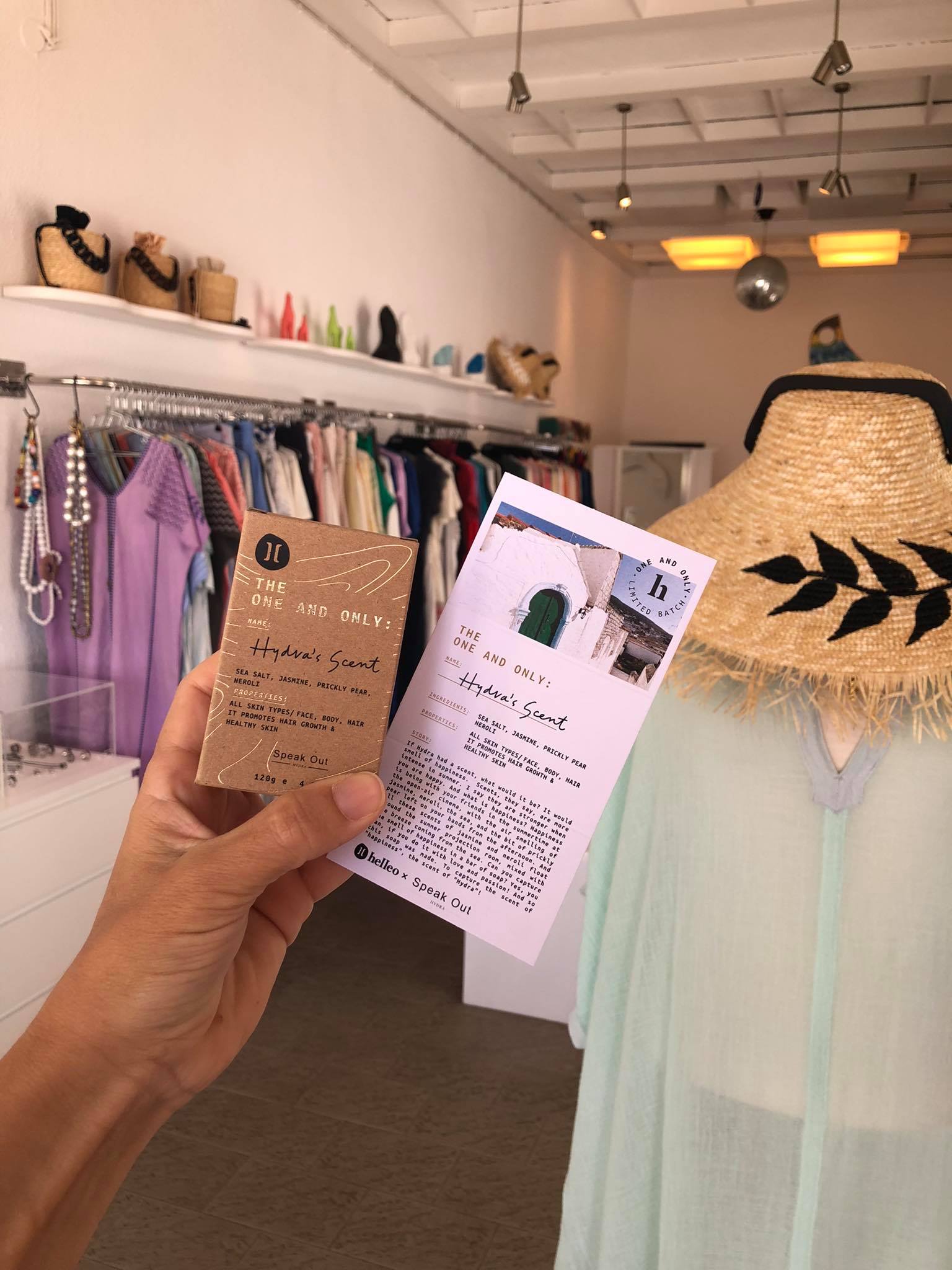 Ένα ευωδιαστό σαπούνι το Hydra's Scent με αρώματα διαλεγμένα ειδικά για να "μυρίζουν" Ύδρα, δημιούργησε με την τεχνογνωσία του helleo, η Χριστίνα Σταματάκου ιδιοκτήτρια του καταστήματος Speak Out στην παραλία της Ύδρας.Το σαπούνι Hydra's Scent είναι 100% φυσικό, χειροποίητο από βιολογικό έξτρα παρθένο ελαιόλαδο.