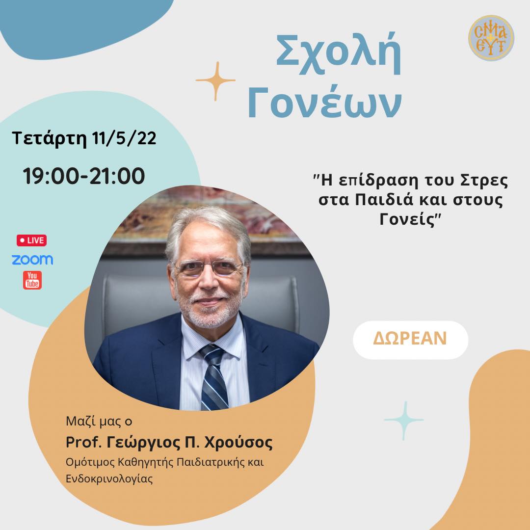 Από το Γραφείο Τύπου της Ι. Μητρόπολης Ύδρας έγινε η ακόλουθη ενημέρωση σχετικά με την 4η διαδικτυακή εισήγηση της Σχολής Γονέων από τον Ομότιμο Καθηγητή Παιδιατρικής και Ενδοκρινολογίας Γ. Χρούσου.