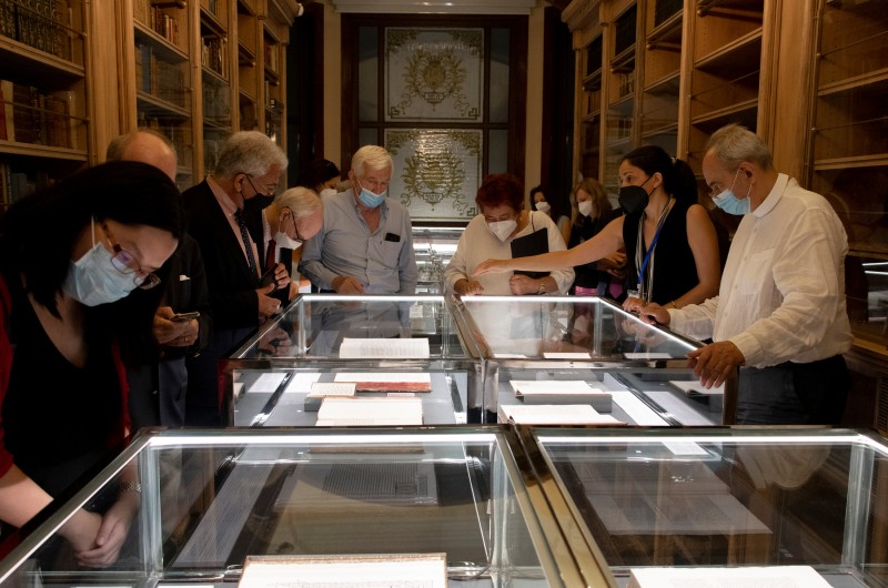 Στο τέλος της εκδήλωσης, οι καλεσμένοι ξεναγήθηκαν στην έκθεση «Η ελληνική γραμματεία στην πρώιμη τυπογραφία», με αρχέτυπες εκδόσεις από τη Συλλογή του Ιδρύματος Αικατερίνης Λασκαρίδη και ειδικό αφιέρωμα στις εκδόσεις των έργων του Αριστοτέλη, για τον οποίον έγινε πολύς λόγος κατά τη διάρκεια της συζήτησης.