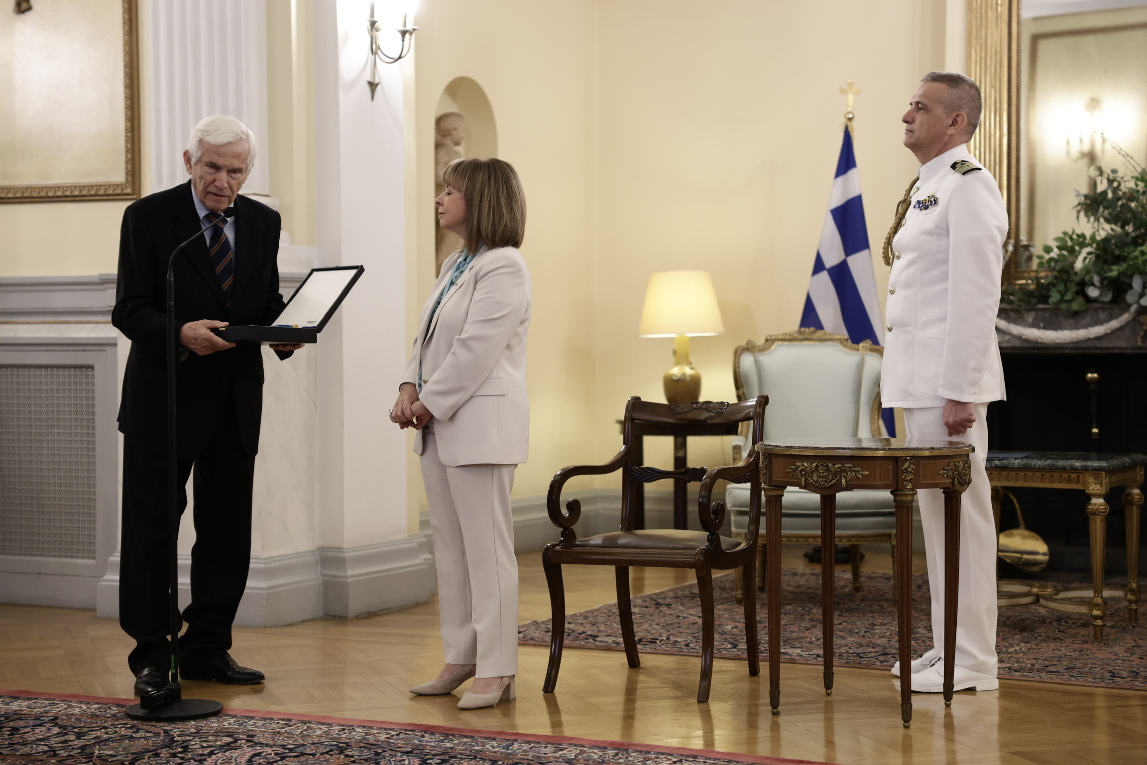 Το Παράσημο του Μεγαλόσταυρου του Τάγματος της Τιμής απένειμε σήμερα το πρωί η Πρόεδρος της Δημοκρατίας Κατερίνα Σακελλαροπούλου, στον εφοπλιστή Δρ. Πάνο Λασκαρίδη, Υποναύαρχο ΠΝ (ε.τ.), σε τελετή που έγινε στο Προεδρικό Μέγαρο.
