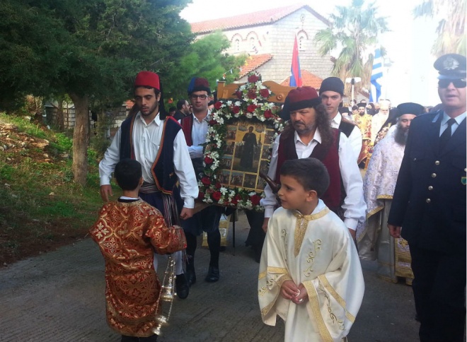 Να θυμίσουμε ότι την παραμονή της γιορτής τελέστηκε νωρίς το πρωί ο μικρός εσπερινός στον Ι. Ναό του Αγίου μας και στη συνέχεια ο μέγας πανηγυρικός Εσπερινός στον Καθεδρικό Ναό της Παναγίας. Ενώ ανήμερα της γιορτής τελέστηκε ο Όρθρος και η πολυαρχιερατική Θ. Λειτουργία και στη συνέχεια σχηματίστηκε κατανυκτική λιτανευτική πομπή η οποία κατέληξε στον Καθεδρικό Ναό.