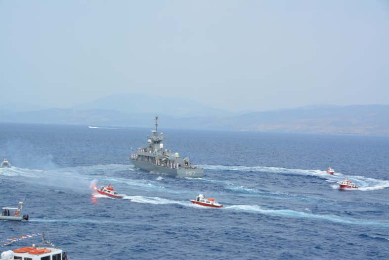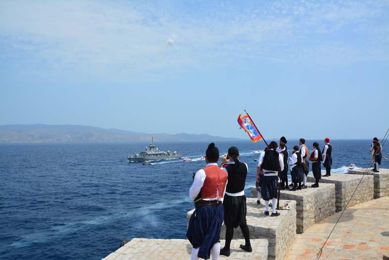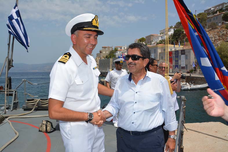 Πραγματοποιήθηκε το πρωί η υποδοχή της τορπιλάκατου του Π.Ν. Ρ67 ΡΟΥΣΣΕΝ η οποία ήρθε για να τιμήσει τις εκδηλώσεις των Μιαουλείων. Με τον επίσημο χαιρετισμό και τα σκάφη να πλέουν παραπλεύρως της τορπιλάκατου διεξήχθη το πρώτο καλωσόρισμα στον Κάβο του Μιαούλη παρουσία της τοπικής ηγεσίας, των τοπικών αρχών και αντιπροσωπείας μπουρλοτιέρηδων. Στη συνέχεια το πολεμικό πλοίο έκανε εντυπωσιακή είσοδο στο λιμάνι της Ύδρας και όλοι οι επίσημοι ανέβηκαν στην τορπιλάκατο και ξεναγήθηκαν στους χώρους της. Εκεί ανταλλάχτηκαν τα καθιερωμένα αναμνηστικά και έγινε θερμό καλωσόρισμα από τον Κυβερνήτη του πλοίου Νικόλαο Πετράκο. Παρόντες επίσης ήταν ο Αρχηγός του Π.Ν. Αντιναύαρχος Γεώργιος Γιακουμάκης, ο Αρχηγός του Στόλου Κωνσταντίνος Καραγιώργης και ο Αντιπλοίαρχος Ι. Σαμοθράκης από τις δημόσιες σχέσεις του Π.Ν.