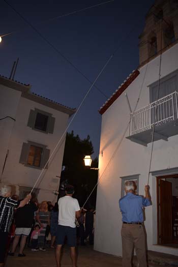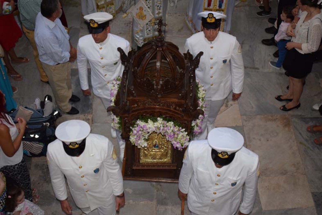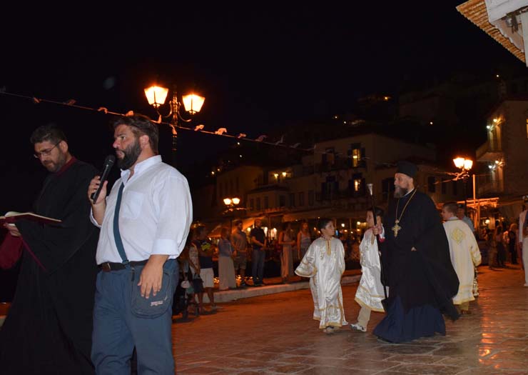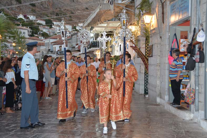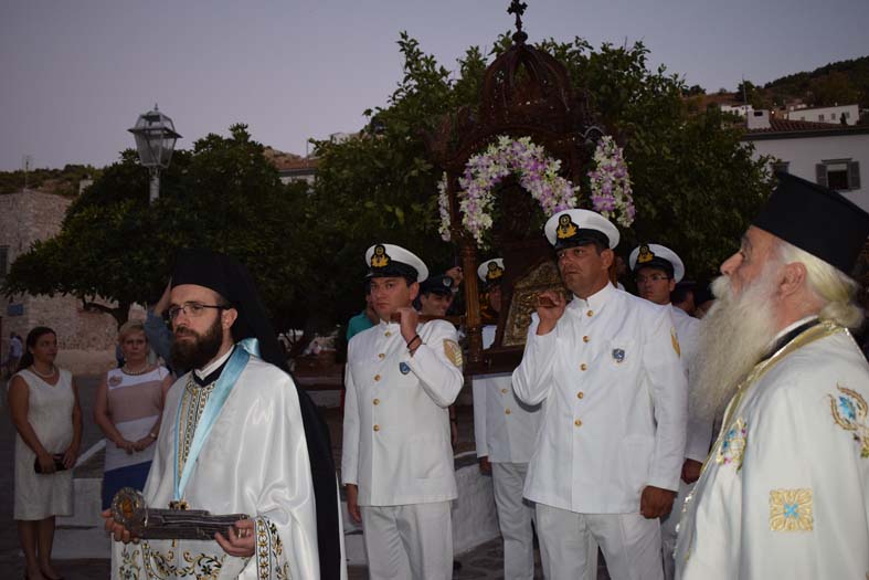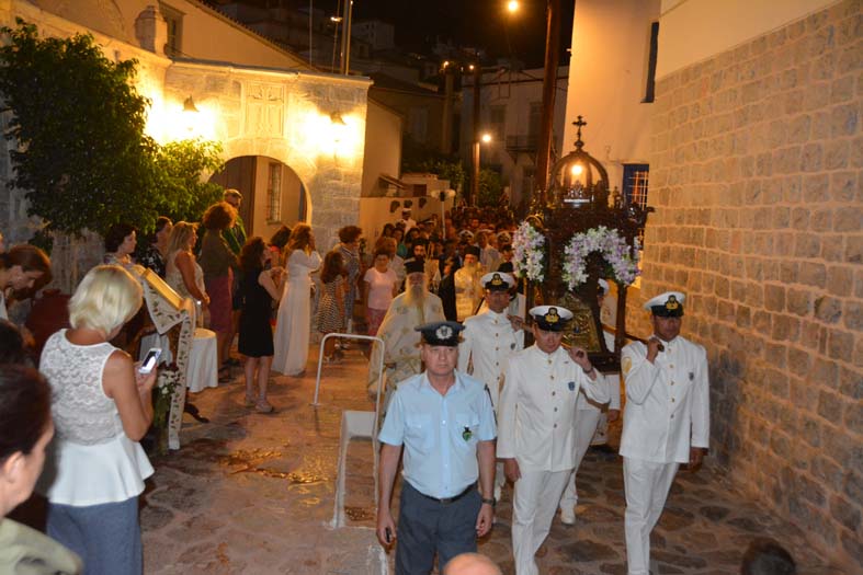 Ακολούθησε η καθιερωμένη λιτάνευση της Ιερής Εικόνας μέσα στα στενά της Ύδρας, σε μια σεπτή πομπή, που τη συνόδεψαν μαζί με τις αρχές του τόπου εκατοντάδες πιστοί, που διασχίζοντας τις γειτονιές είχαν την ευτυχία να συναντούν τους ιδιοκτήτες δεκάδων σπιτιών με κεράκια και φαναράκια αναμμένα κατά την περιφορά της εικόνας.