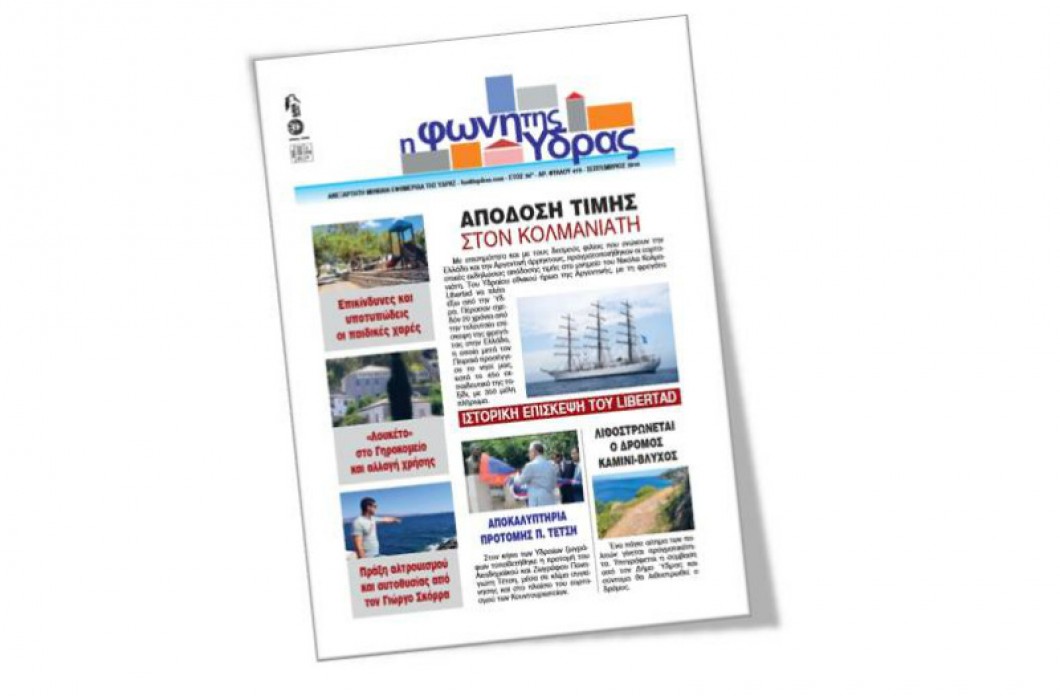 Κυκλοφόρησε το τεύχος Σεπτεμβρίου της «Φωνής της Ύδρας» (Α.φ. 419), με ένα πλούσιο σε επικαιρότητα 20σέλιδο, με όλες τις ειδήσεις και τα καίρια θέματα του νησιού, αντικειμενικά και εμπεριστατωμένα, πάντα κοντά στον πολίτη, με ευθύτητα και καθαρότητα. Με άρθρα, σχολιασμούς για τα καθημερινά προβλήματα των πολιτών, επιστολές, προβληματισμούς και επισημάνσεις. Διαβάστε μεταξύ άλλων: