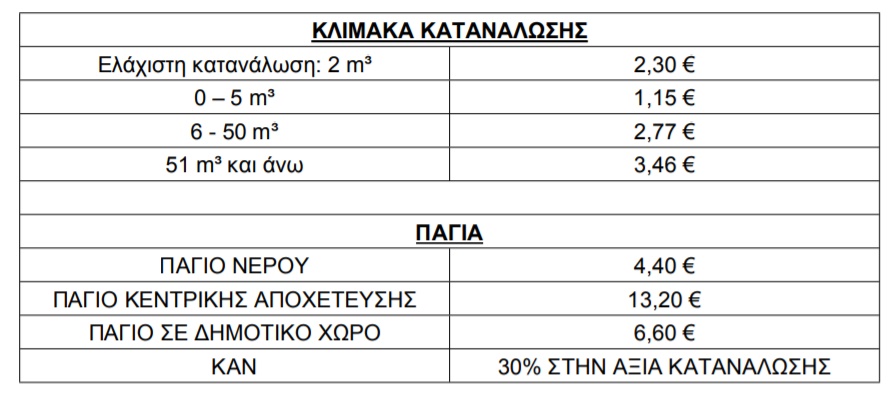 Τα τέλη έχουν αναλυτικά ως εξής: