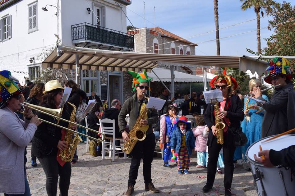 Εκεί τον ρυθμό έδινε ο Μουσικός Σύλλογος Ύδρας με επίκαιρα ακούσματα. Σε κλίμα γεμάτο από εορταστικά εφέ, οι μασκαράδες με τις ευφάνταστες στολές τους, τις θεματικές ομαδικές προσεγγίσεις, τα πειράγματα και τις μάσκες που σε έκαναν να αναρωτιέσαι ποιος κρύβεται πίσω από αυτές, ξεκίνησαν όλοι μαζί, τον καθιερωμένο γύρο του νησιού.