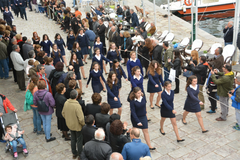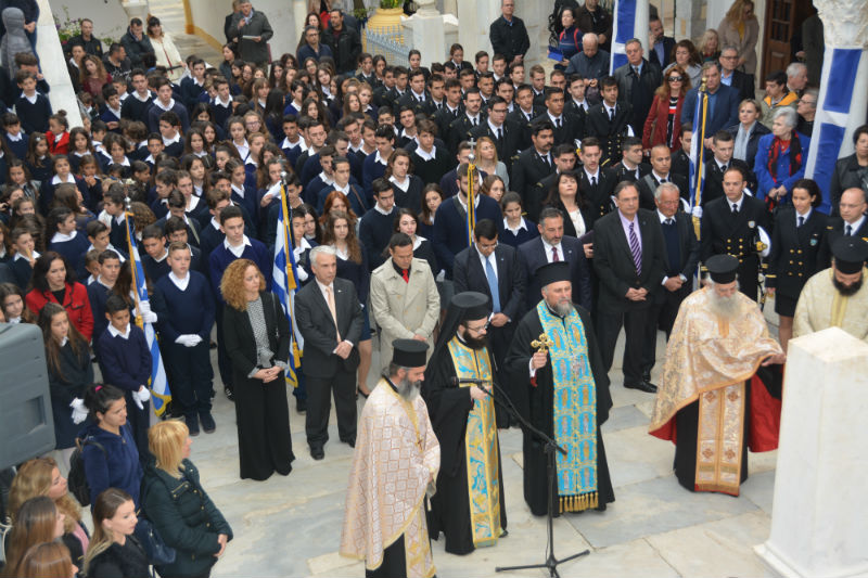Στη συνέχεια πραγματοποιήθηκε στην παραλία η παρέλαση των μαθητών και μαθητριών των σχολείων και των σπουδαστών της Ακαδημίας Εμπορικού Ναυτικού.