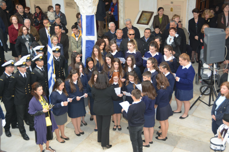 Τον πανηγυρικό λόγο της ημέρας εκφώνησε η Βασιλική Γκιώνη, Απόφοιτη του Τμήματος Μεθοδολογίας, Ιστορίας και Θεωρίας της Επιστήμης του ΕΚΠΑ, ενώ ακούστηκαν εθνικά ποιήματα από τους μαθητές και τις μαθήτριες των σχολείων καθώς και επίκαιρα τραγούδια από τη χορωδία Γυμνασίου-Λυκείου υπό της Διευθύντριας Λυκείου Μαρίας Μαρσέλου. Τελετάρχης του εορτασμού ήταν και φέτος ο Δημήτρης Δάβης.