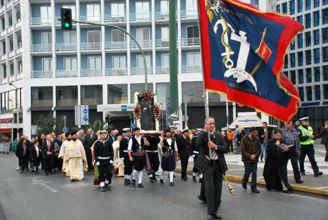 Πλήθος κόσμου και μέλη του Συνδέσμου παραβρέθηκε στον Ιερό Ναό για να συνεορτάσει μεγαλοπρεπώς ενώ στη συνέχεια ακολούθησε λιτάνευση της εικόνας του Αγίου Κωνσταντίνου στις παρακείμενες οδούς του Ναού με προπορευόμενη την μπάντα του Δήμου Πειραιά, την αντιπροσωπεία Υδραίων μπουρλοτιέρηδων και Υδραίας με παραδοσιακή φορεσιά.