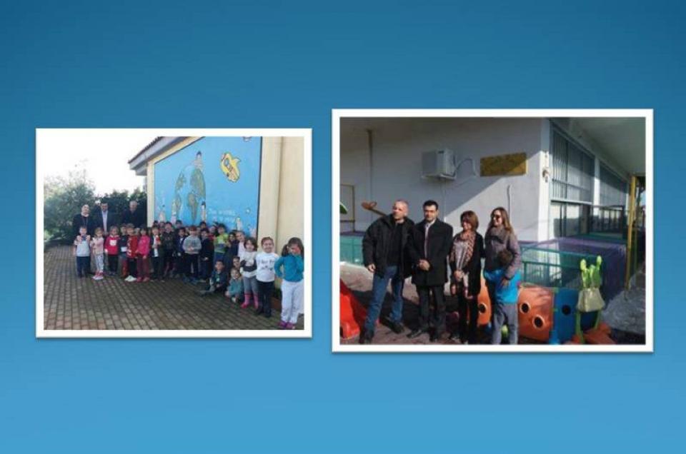 2) Στο 1ο Νηπιαγωγείο Αγίας Μαρίνας ένα κλιματιστικό και ένας διαδραστικός πίνακας.