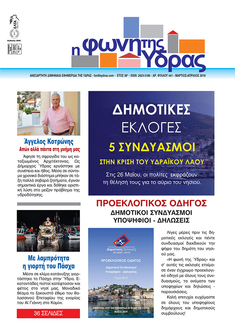 Κυκλοφόρησε το νέο τεύχος της «Φωνής της Ύδρας» (Α.φ. 441), με 36 ΣΕΛΙΔΕΣ, προεκλογικό οδηγό με όλους τους συνδυασμούς, υποψηφίους και δηλώσεις.