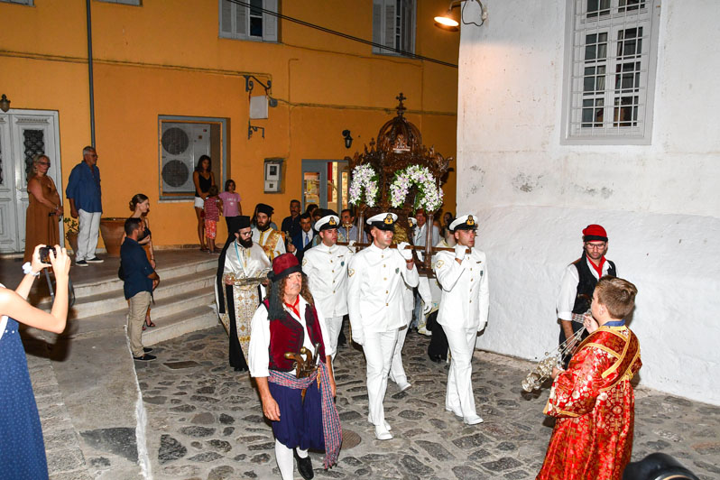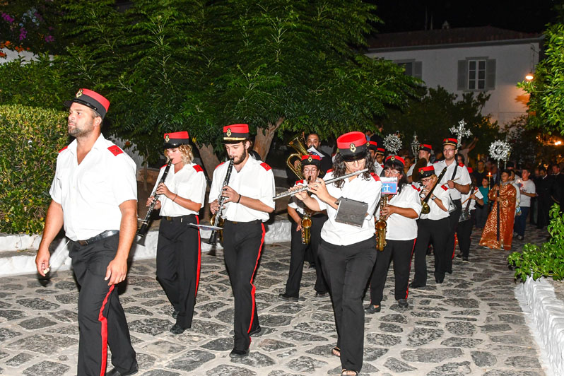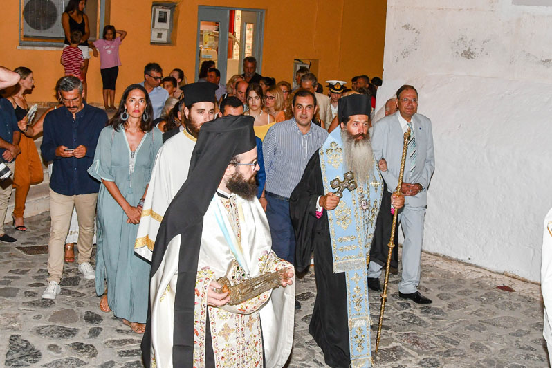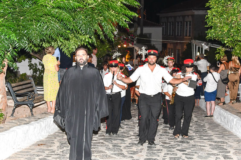 Η σεπτή πομπή με τις αρχές του τόπου παρούσες, τον Μουσικό Σύλλογο να παιανίζει και κόσμο να ακολουθεί, διέσχισε κεντρικούς δρόμους του νησιού, γειτονιές και δρομάκια.
