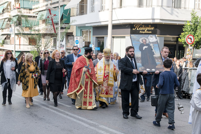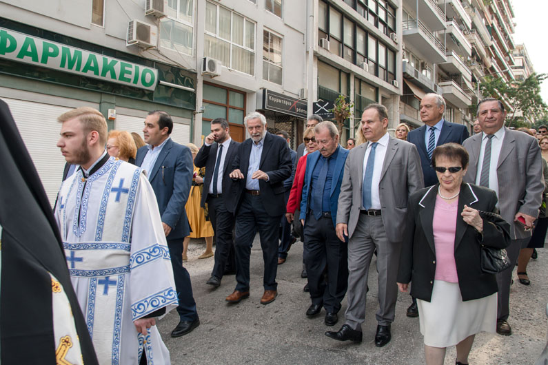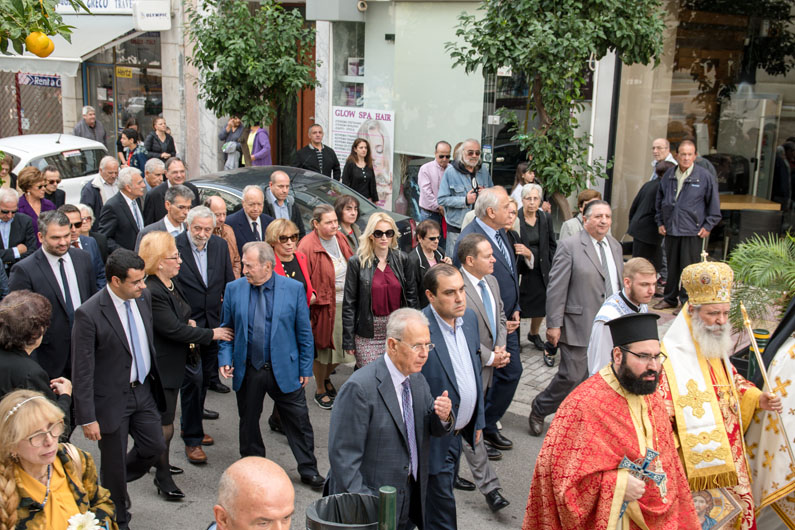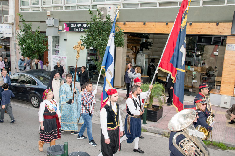 Ακολούθησε η λιτάνευση της εικόνας του Αγίου σε παρακείμενη οδό του Ναού, με προπορευόμενη τη Φιλαρμονική του Δήμου Πειραιά και αντιπροσωπεία Υδραίων μπουρλοτιέρηδων.