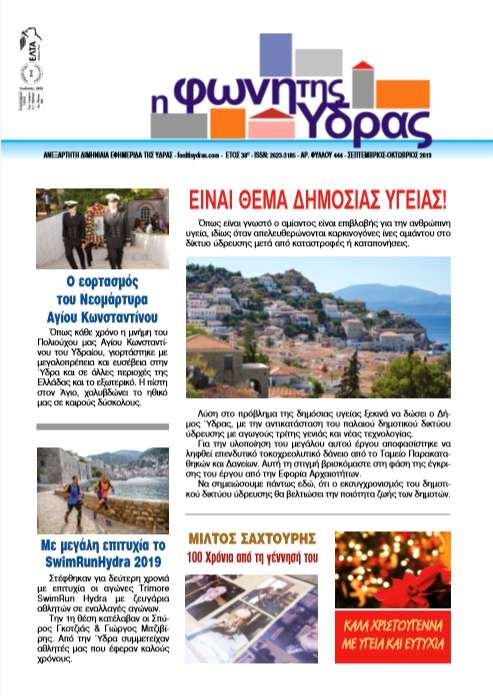 Κυκλοφόρησε το τεύχος Σεπτεμβρίου-Οκτωβρίου 2019 της «Φωνής της Ύδρας» (Α.φ. 444), με 20 ΣΕΛΙΔΕΣ ενημέρωσης και με σημαντικά γεγονότα του νησιού.