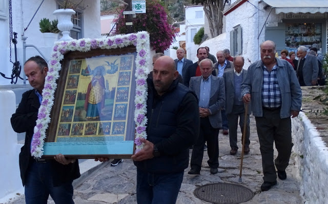 Μεγάλη ήταν η συμμετοχή των οικοδόμων του νησιού που γιόρτασαν την προστάτη τους Αγία Βαρβάρα, κρατώντας την εικόνα κατά τη λιτάνευσή της.