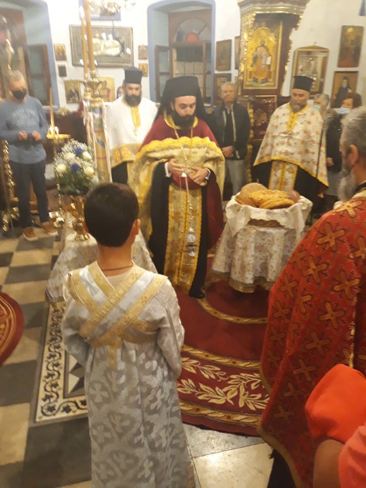 Οι πιστοί παρακολούθησαν με ευλάβεια τον Μ. Πανηγυρικό Εσπερινό ο οποίος τελέστηκε με ιδιαίτερη λαμπρότητα, ενώ παράλληλα πραγματοποιήθηκε και η αρτοκλασία.